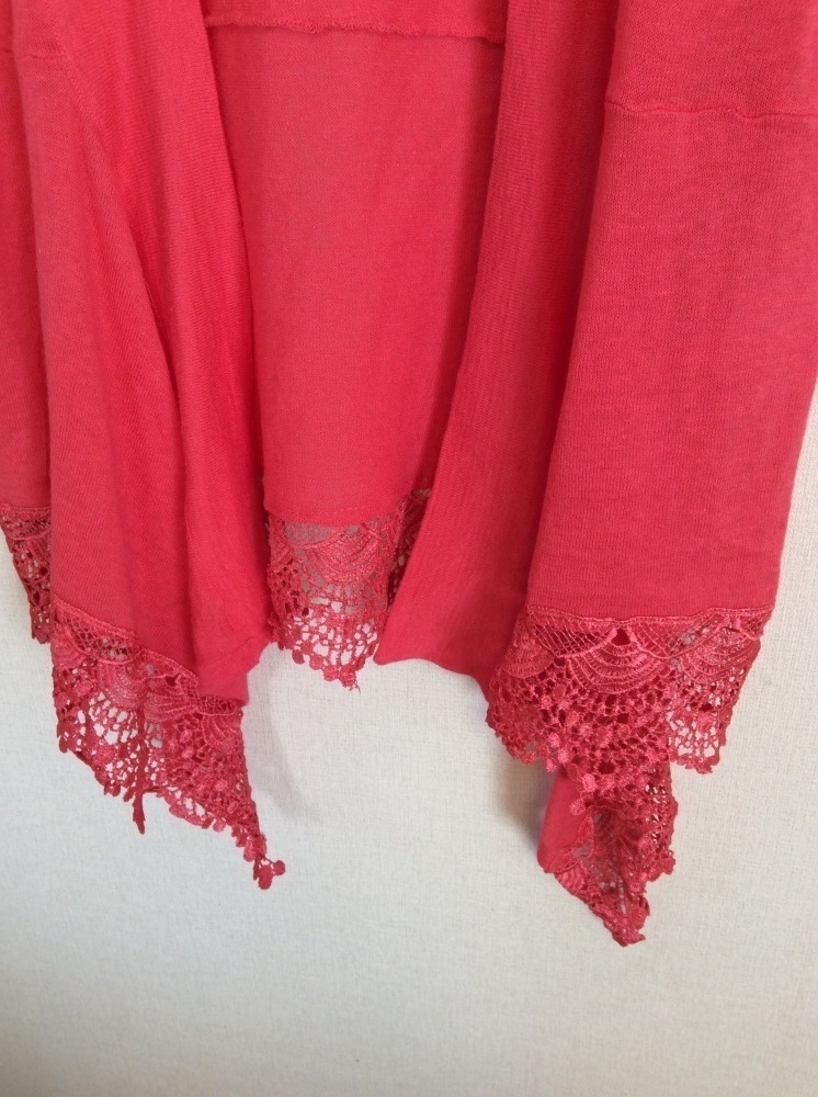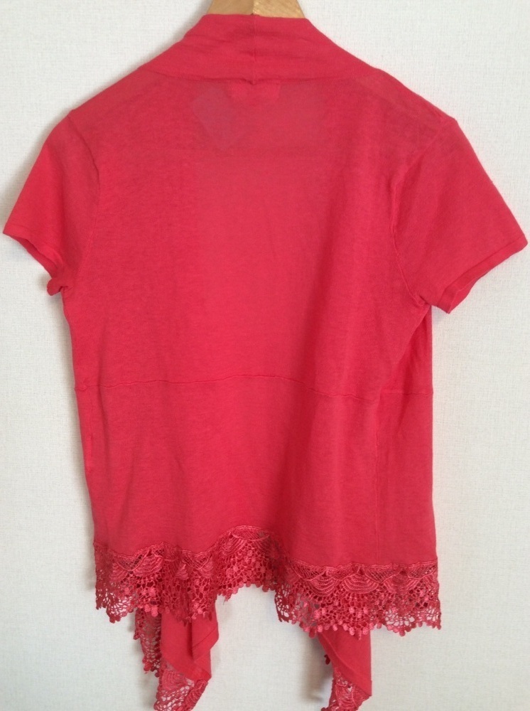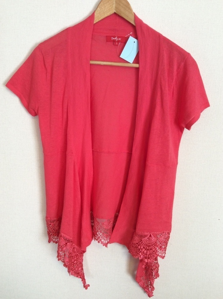 | 管理番号:128317 オレンジピンク 裾レース半袖カーディガン 表示サイズ:S 実寸(参考)