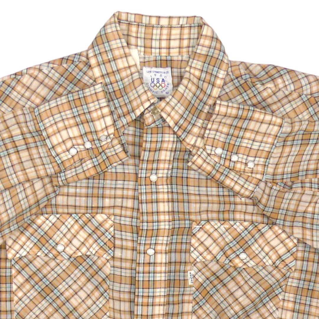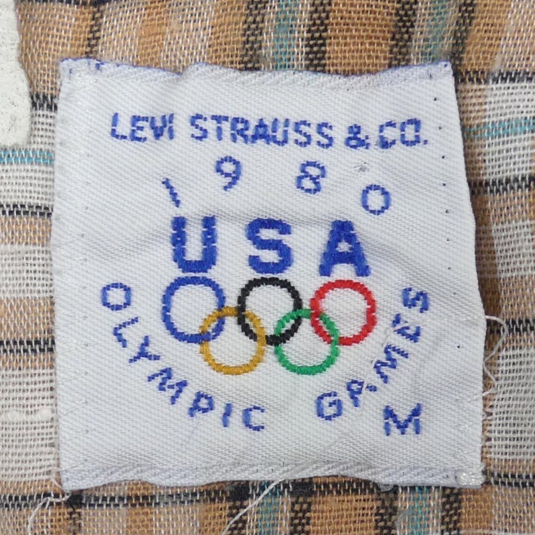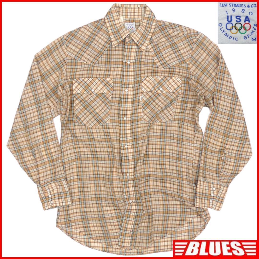 即決★Levi‘s★メンズM ウエスタンシャツ リーバイス 1980アメリカ製オリンピック限定 茶 ベージュ オレンジ 長袖 ヴィンテージ