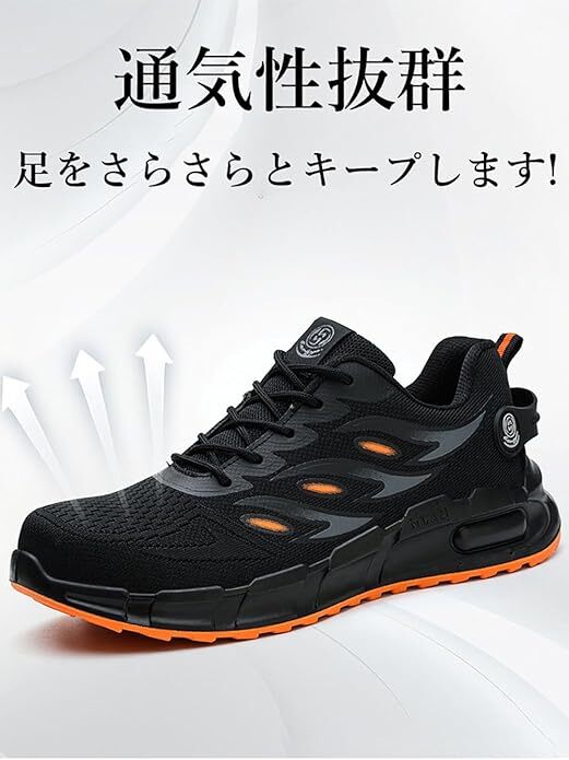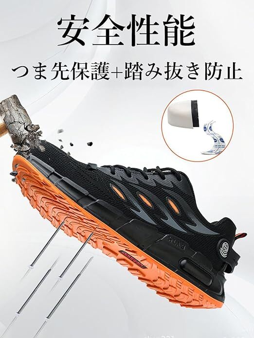 安全靴 作業靴 通気性 軽量 踏み抜き防止プ 先芯入り 耐摩耗 衝撃吸収 厚底 サイズ:28cm