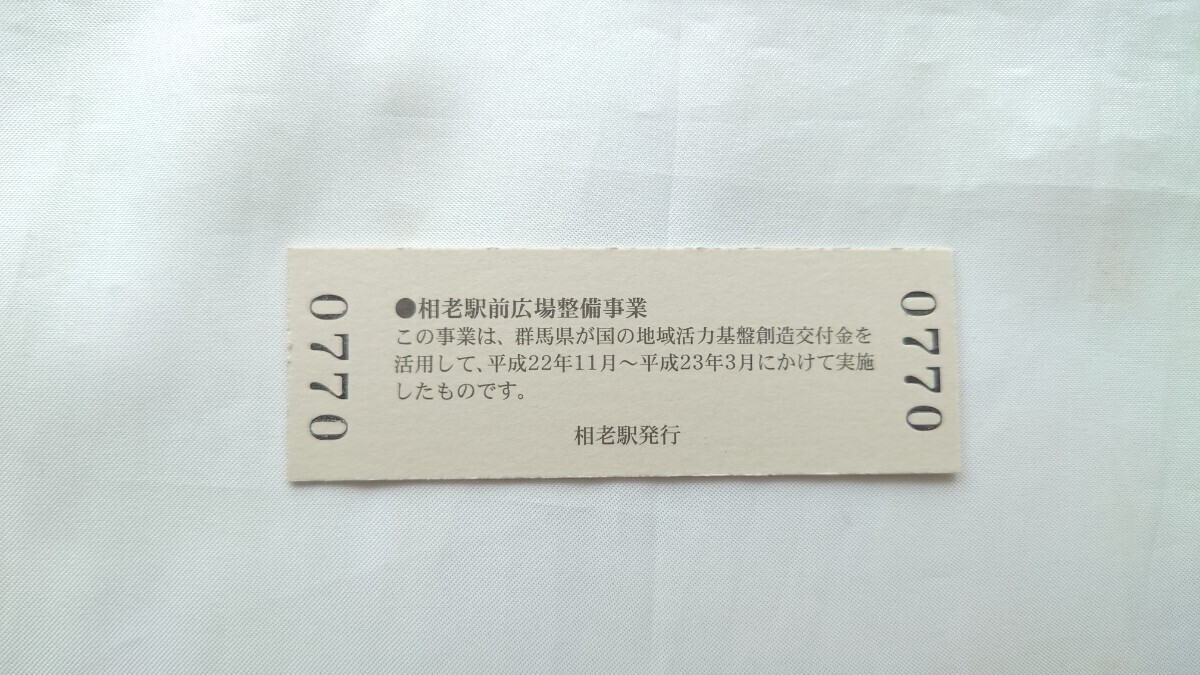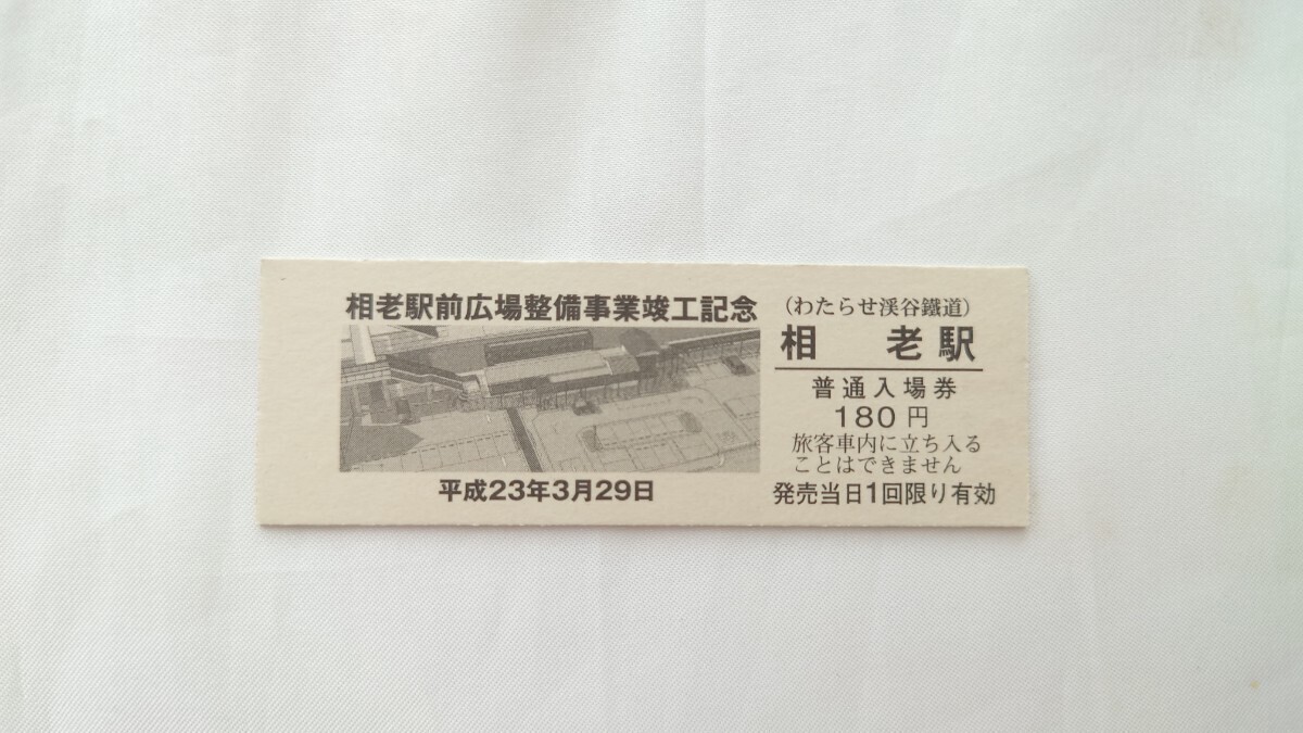 △わたらせ渓谷鐵道△相老駅前広場整備事業竣工記念相老駅180円入場券△D型硬券平成23年
