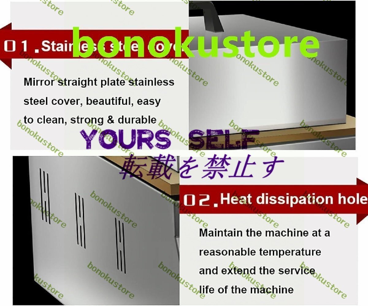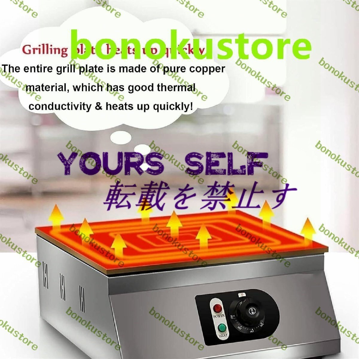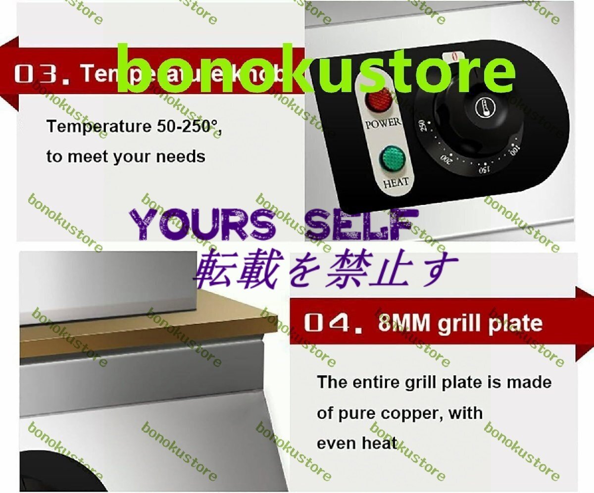 業務用ワッフルメーカー、業務用電気パンケーキメーカー、スフレメーカー、どら焼きベーカー、パンケーキメーカーは、スフレ、どら焼き、パンケーキ、さらにはステーキの加熱に適しており、家庭、キッチン、パーティー、レストラン、デザートショップ、屋台で使用できます。特徴- ミラーパネル素材のステンレススチールカバー、美しくお手入れが簡単。- 側面に複数の放熱穴があり、機械を安全に作動させます。- 温度調整ノブ、温度50?250℃、必要に応じて調整可能、便利。- 8mm厚の銅製加熱プレート、高速加熱、均一加熱、待ち時間の短縮。仕様名前:電気スフレメーカープレート素材:オール銅本体素材:ステンレススチール定格電圧:220V電力: 1700wプレートの厚さ: 8mm温度範囲: 50-250℃サイズ: 350 * 425 * 175mm/13.7 * 16.7 * 6.8インチパッケージ1 * 電気スフレメーカー