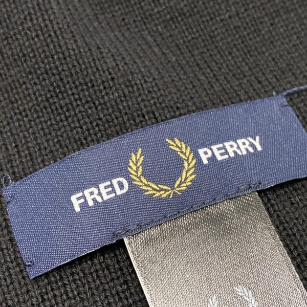 フレッドペリー FRED PERRY - コットン、ウール 黒×ブラウン 刺繍 美品 マフラー