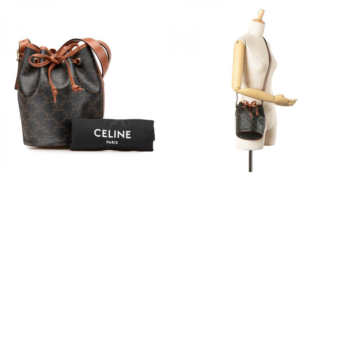 セリーヌ トリオンフ スモール ドローストリング 斜め掛け ショルダーバッグ ブラウン PVC レザー レディース CELINE 【中古】