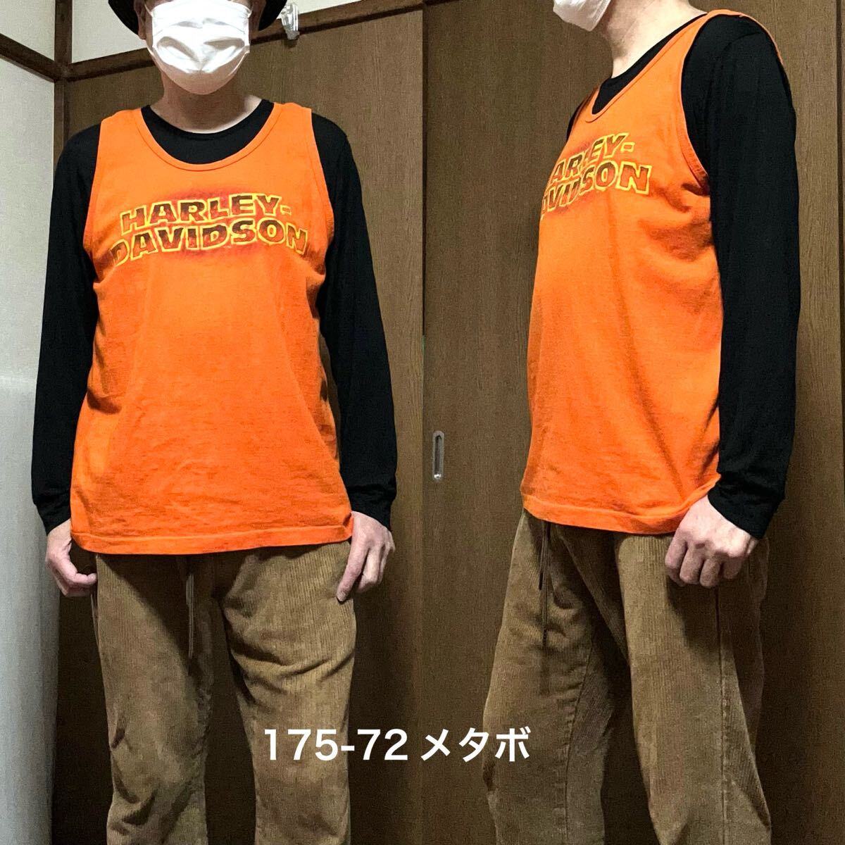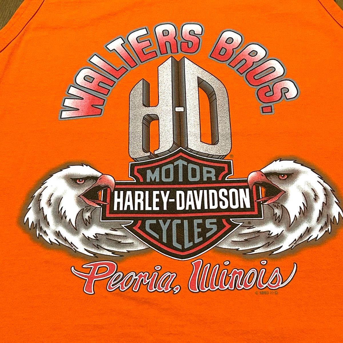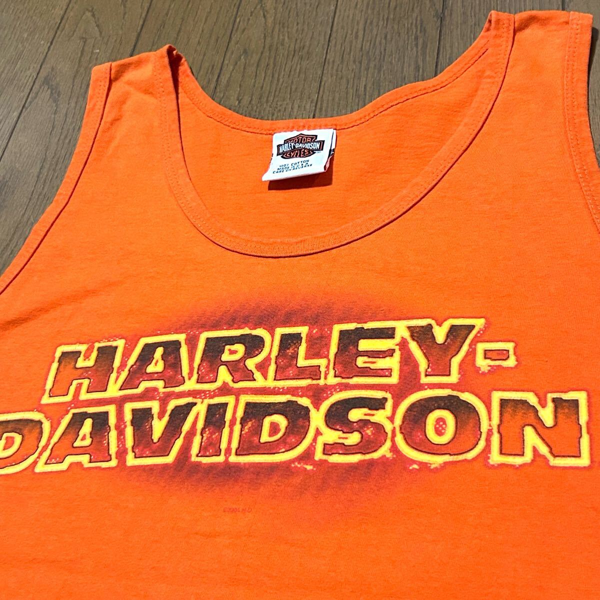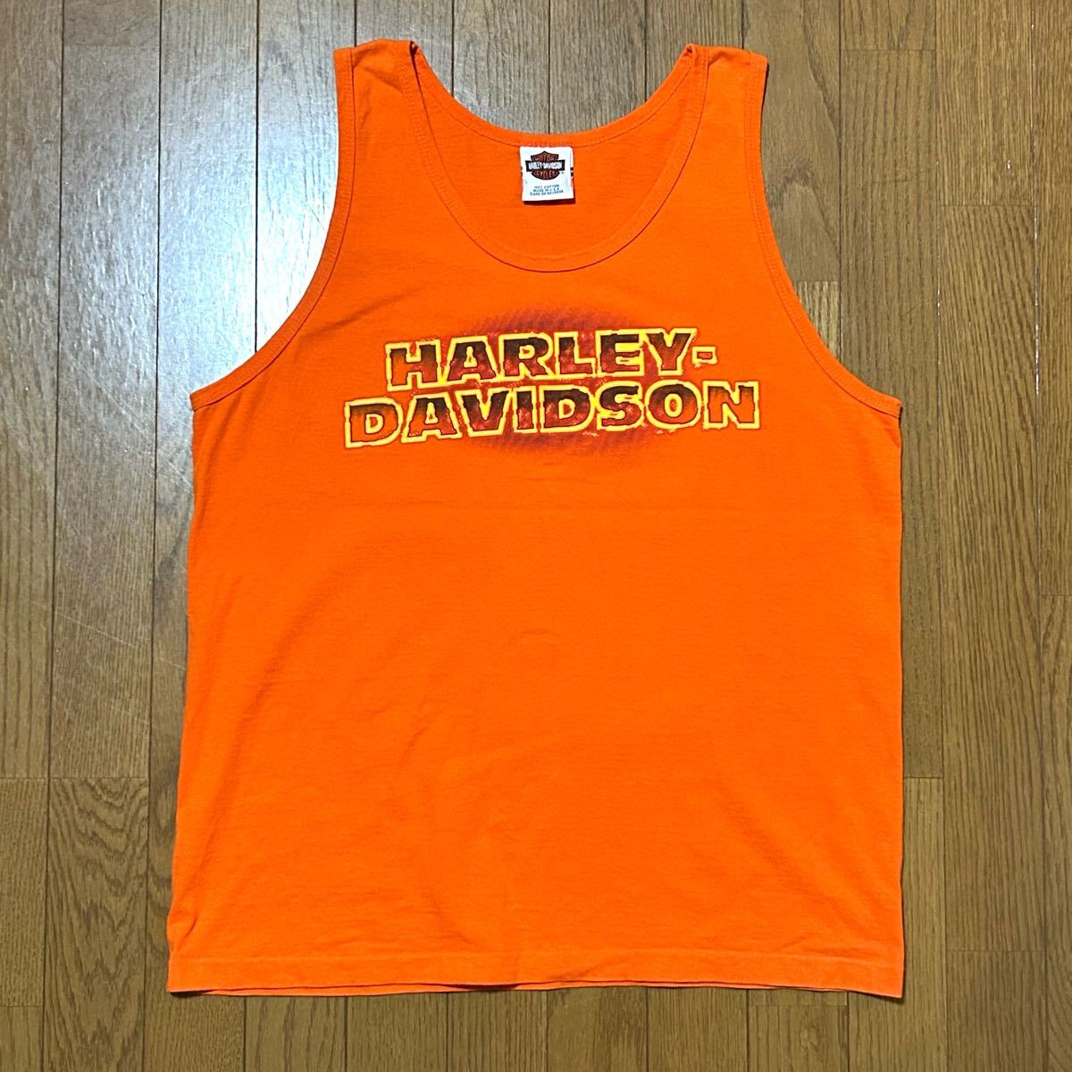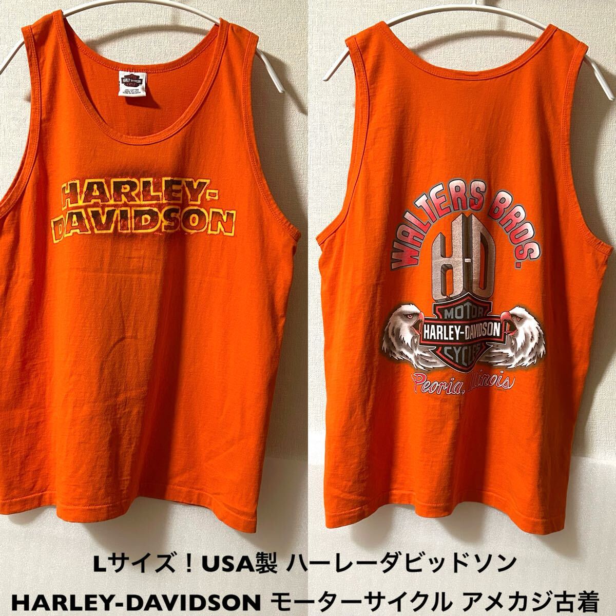 Lサイズ!USA製 ハーレーダビッドソン 古着タンクトップ オレンジ WALTERS BROS.