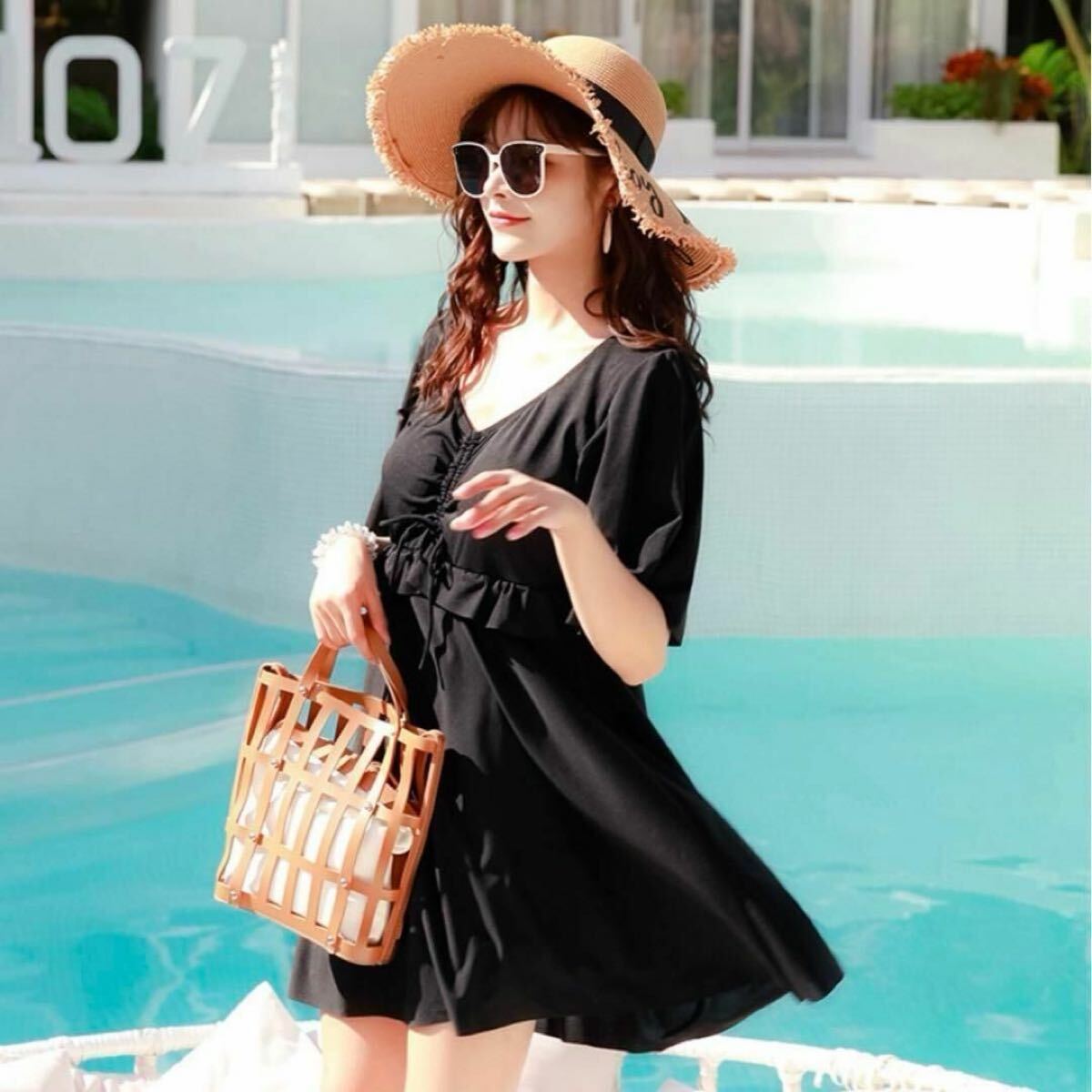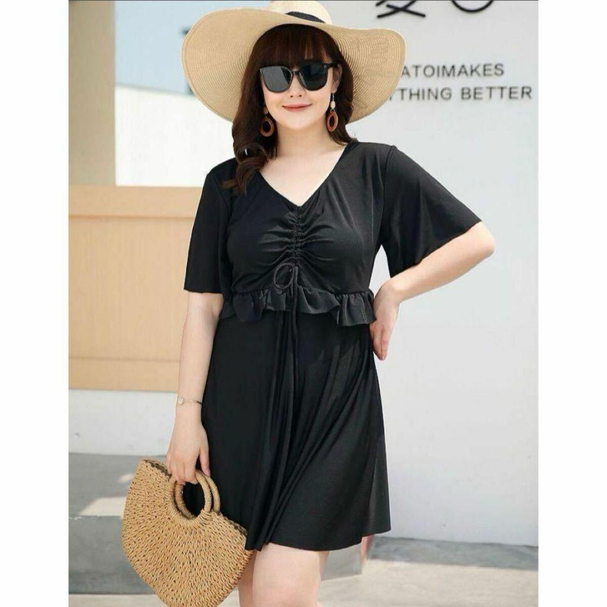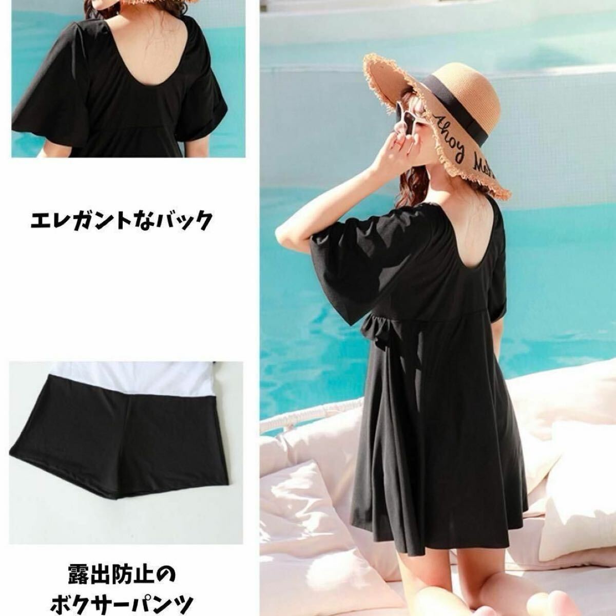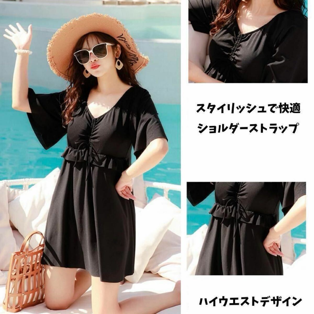 安心の大きめサイズ!お腹・二の腕・お尻・太もも、隠したいところをバッチリと隠してくれます。体型カバーにとっておきの水着です。