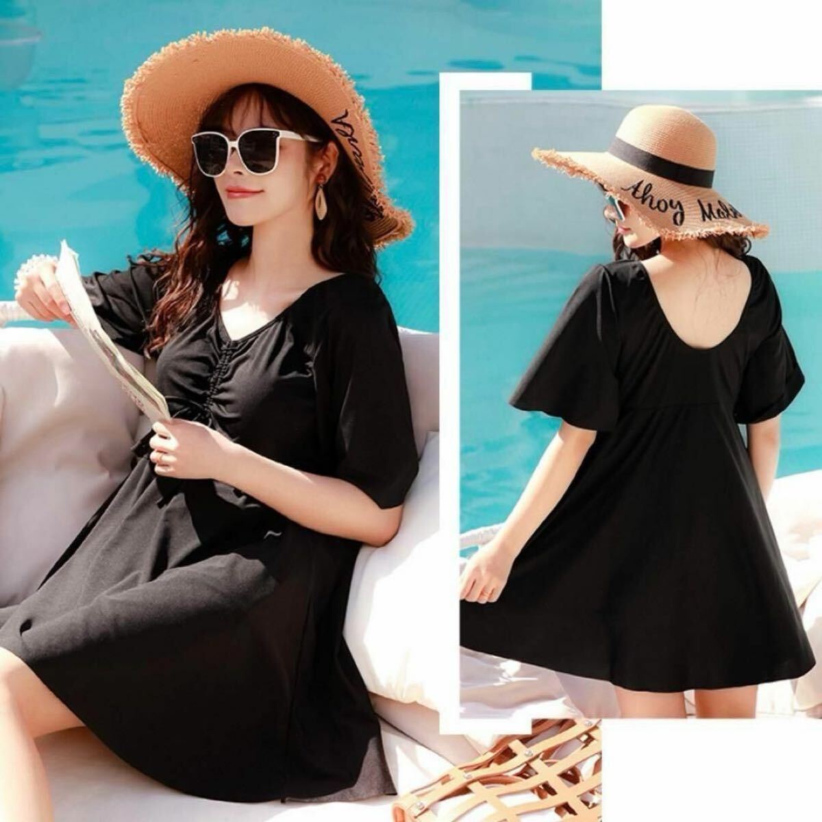 シンプルでかわいいワンピースタイプの水着です。