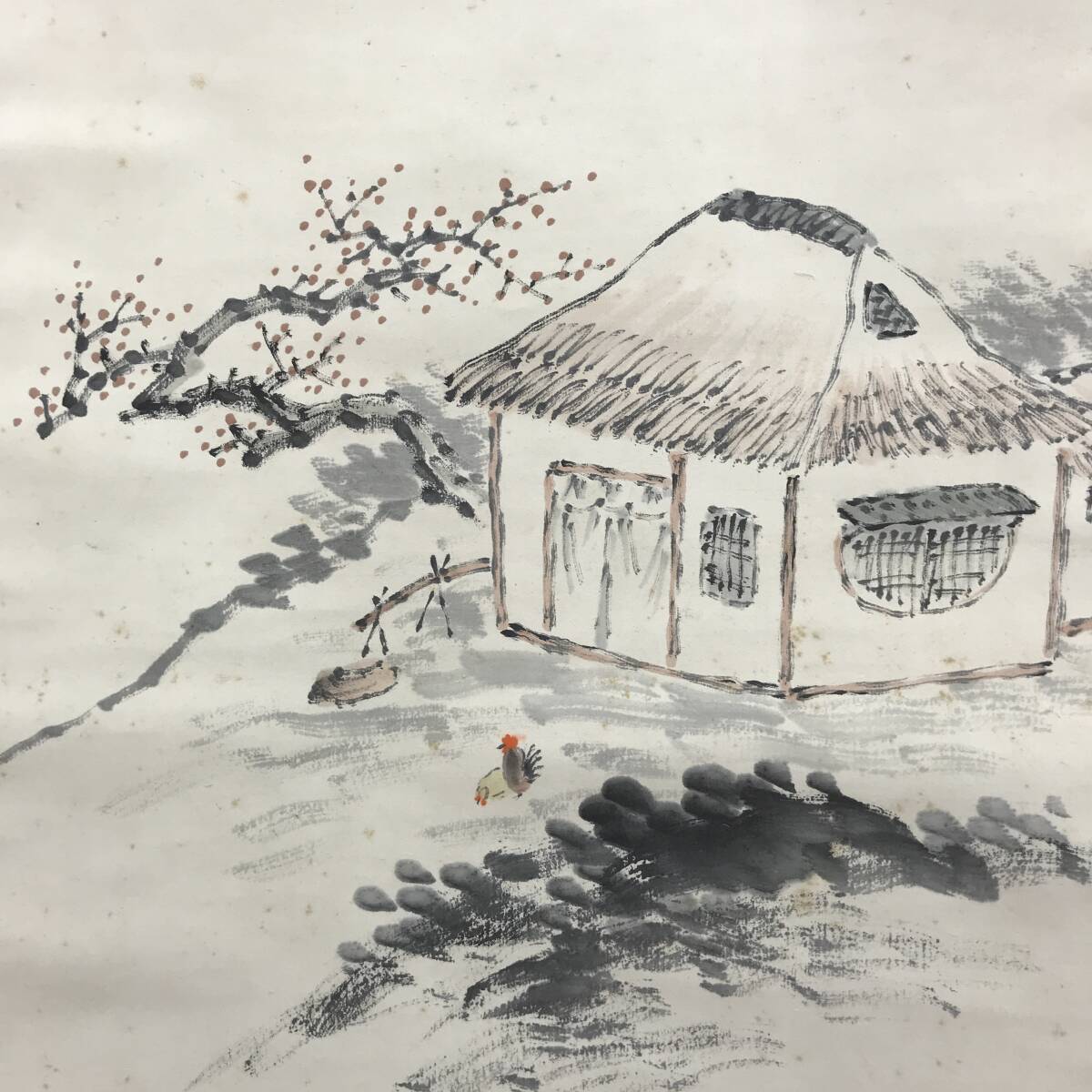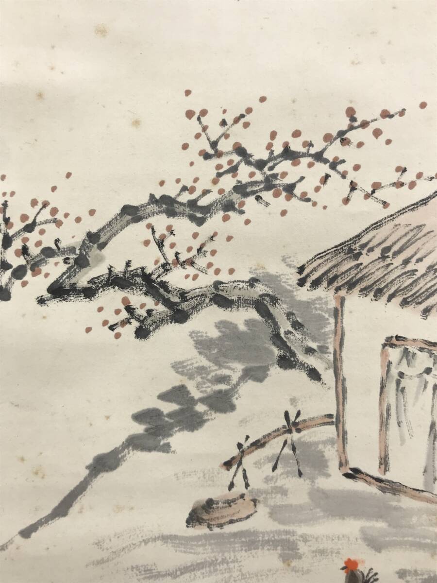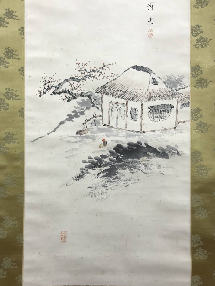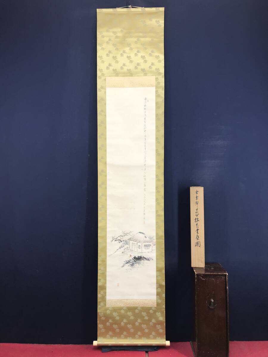 真作/平野古桑/梅花書屋図/山水図/山水画賛/掛軸☆宝船☆AJ-57