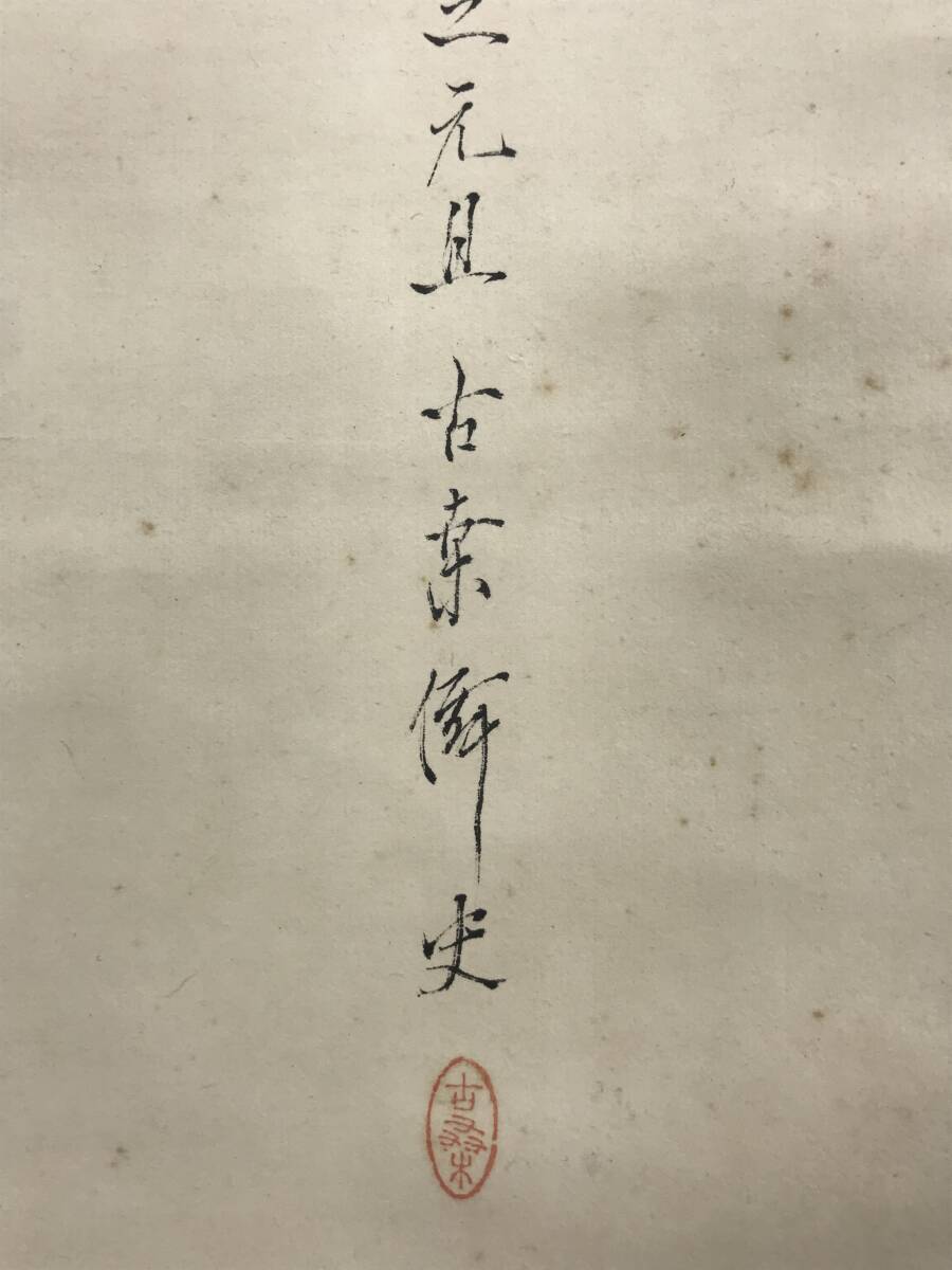 【作品状態】 本紙は紙本肉筆です。本紙は薄汚れ、全体に汚れシミ、糊シミあります。表装は概ね良好です。