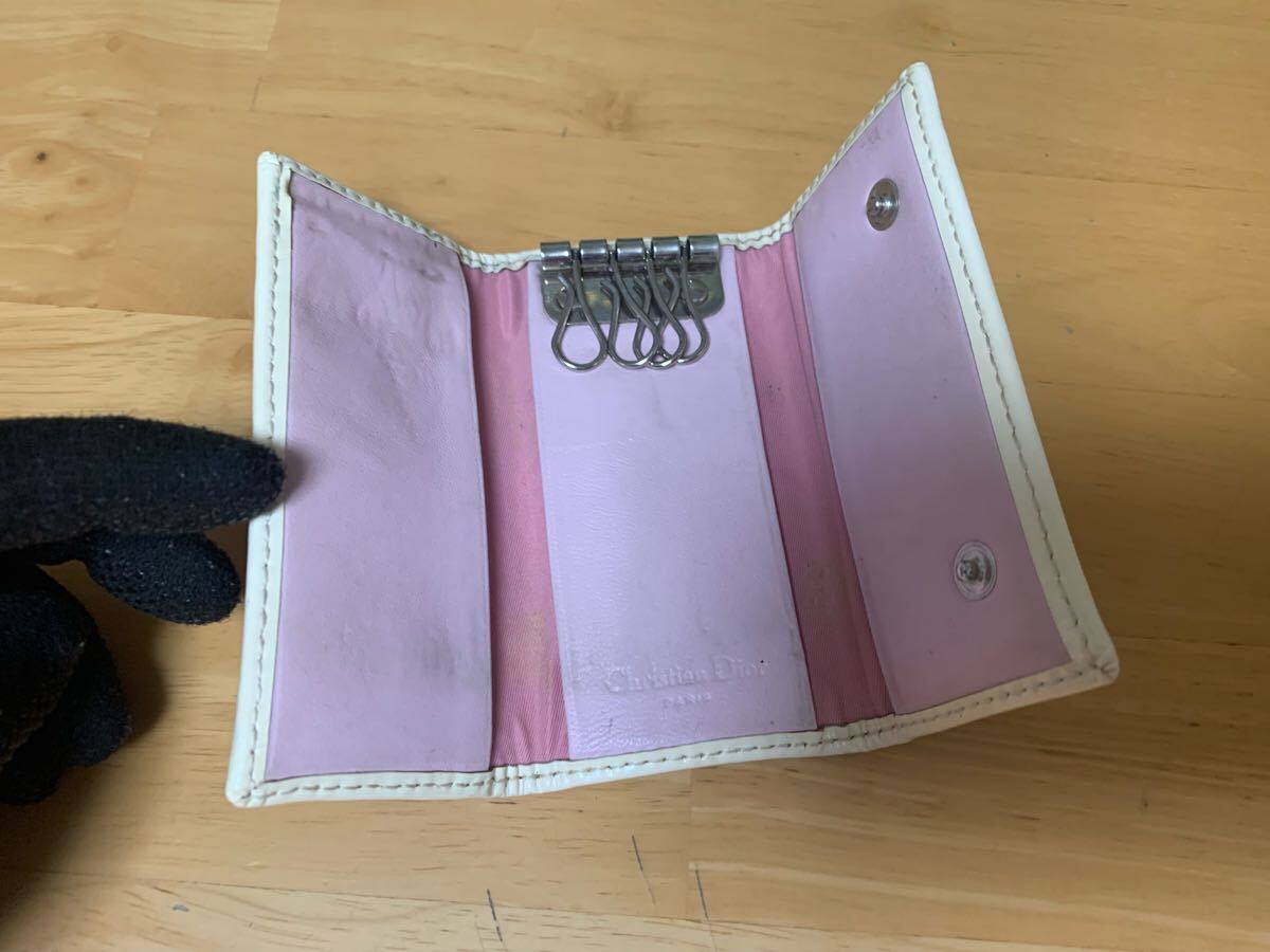中古DIORの4連キーケースの出品です。ピンク色トロッター柄PVC素材になります。シリアルナンバーは写真でご確認下さい。Made in Italy、イタリア製。