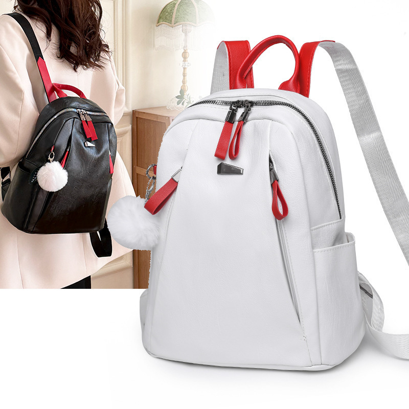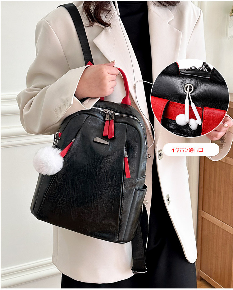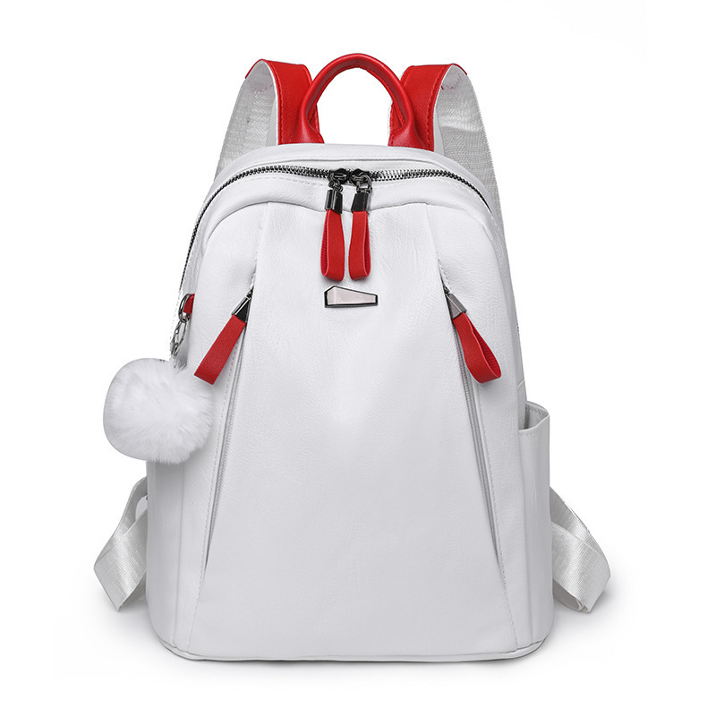 ホワイトの合皮調生地にワンポイント赤でインパクトのあるおしゃれなリュックバックになります。
