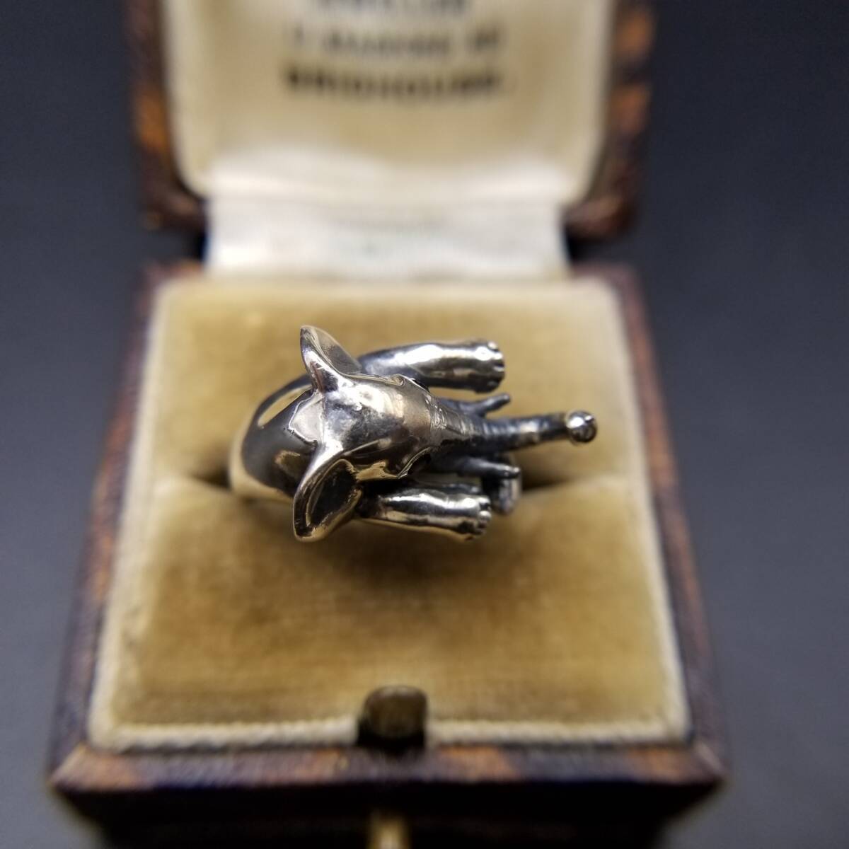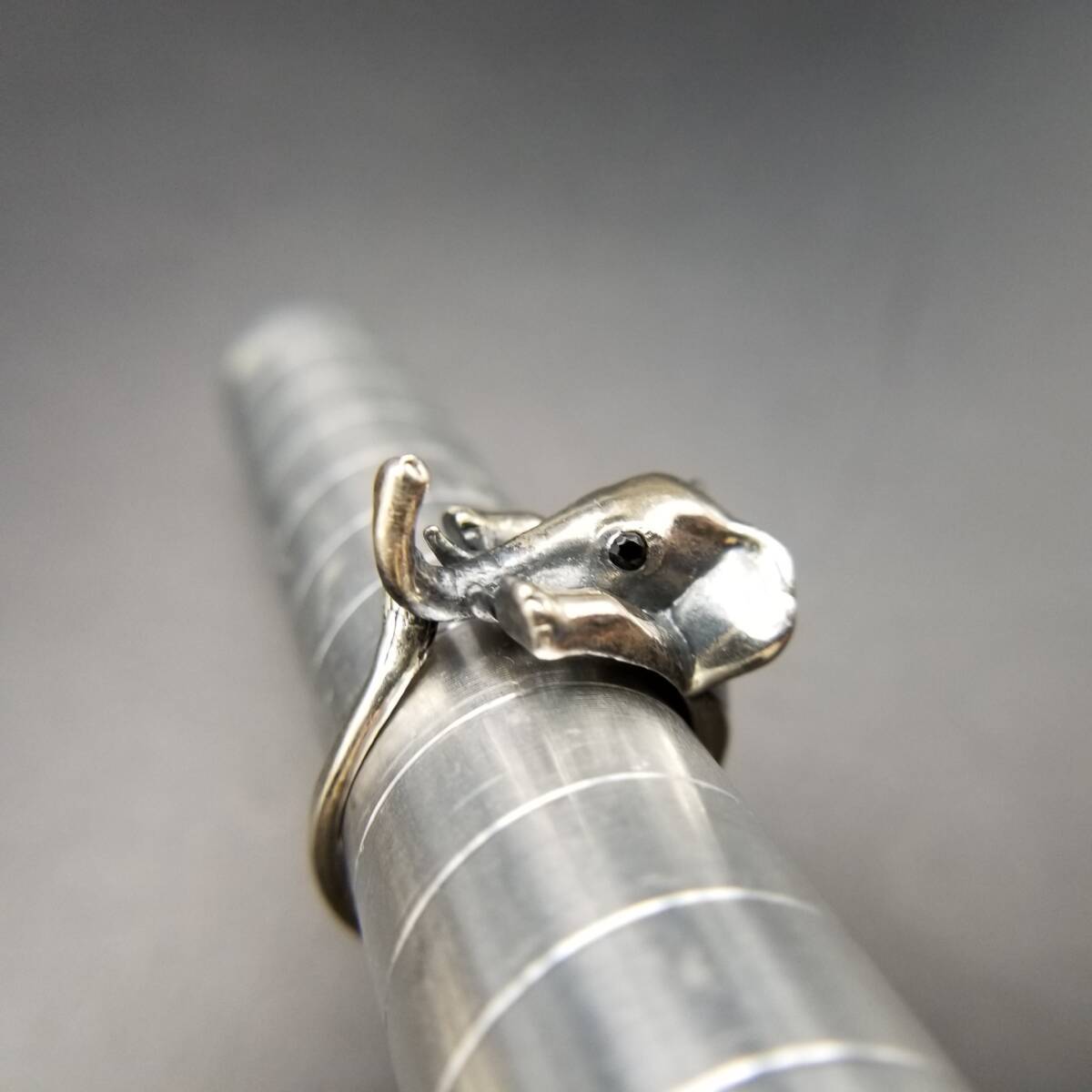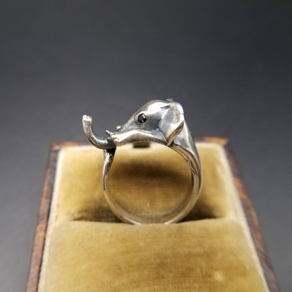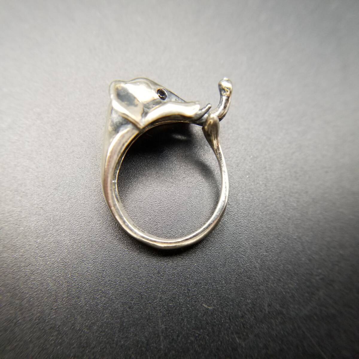 鼻を上げる子ゾウ アニマルモチーフ 立体彫刻 925 シルバー ヴィンテージ リング 指輪 銀細工 レトロ キュート 小さいサイズ R15-D