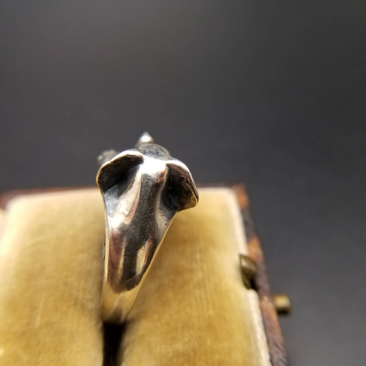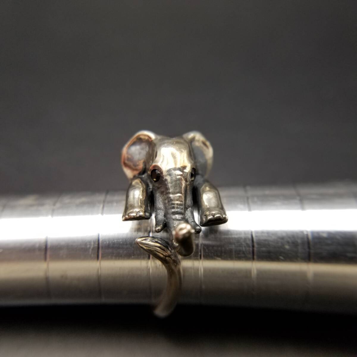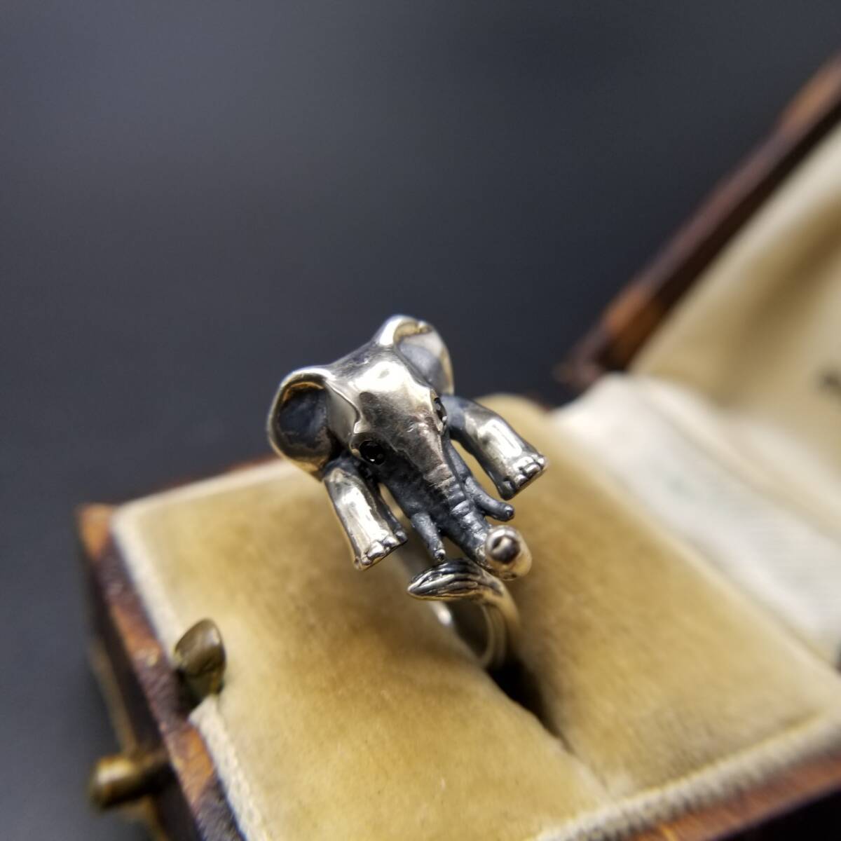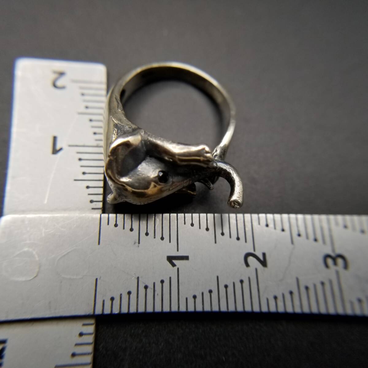 鼻を上げる子ゾウ アニマルモチーフ 立体彫刻 925 シルバー ヴィンテージ リング 指輪 銀細工 レトロ キュート 小さいサイズ R15-D