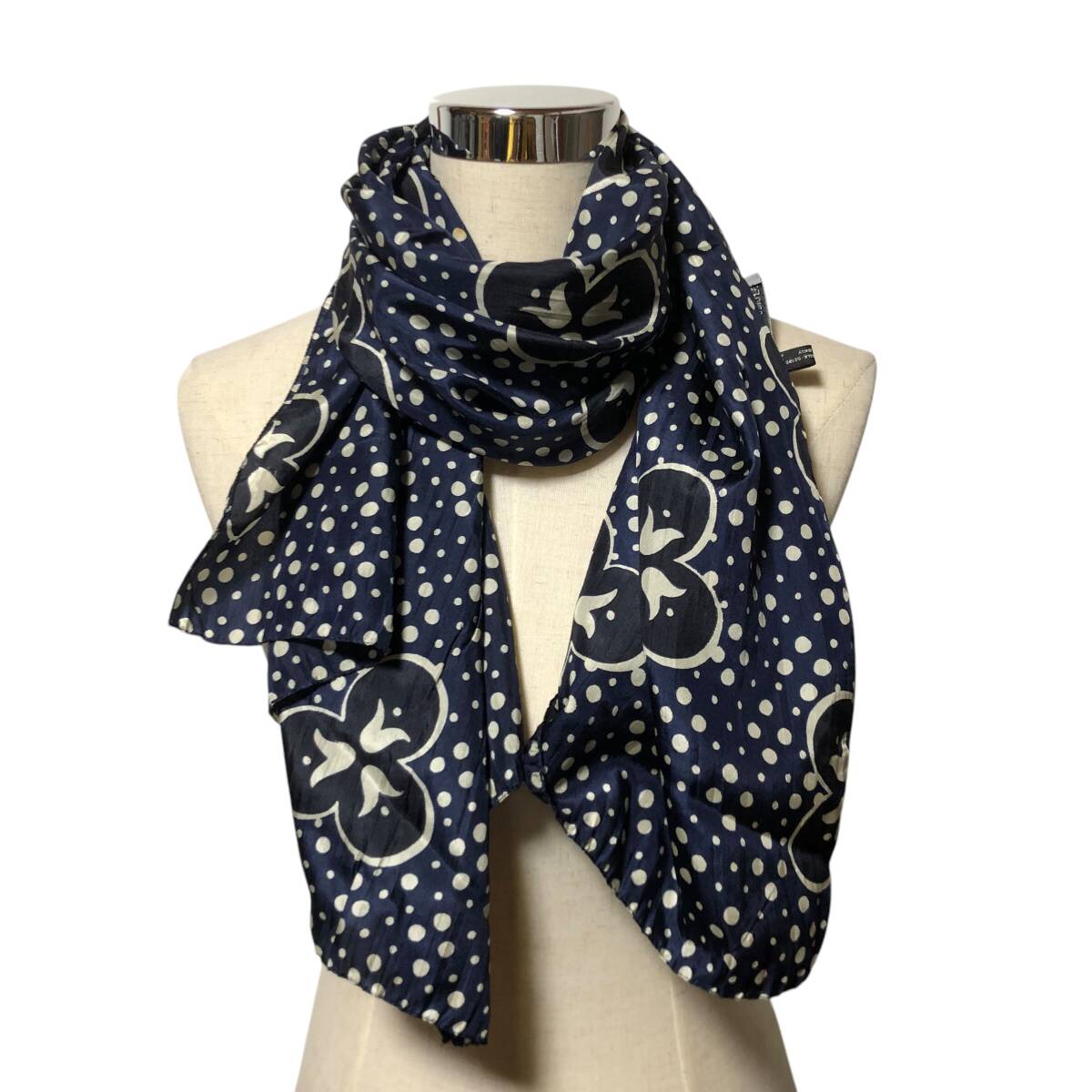 EMPORIO ARMANI エンポリオアルマーニ ストール ショール シルク 総柄 ドット イタリア製 ネイビー ST3
