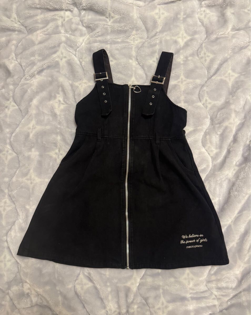 ■ハード&ガーリーなコントラストに心打たれるジャンスカです。ジップやショルダーベルトの辛口な雰囲気を、ハートチャームがほどよく緩和♪ 背中はゴムギャザーで切り替えてストレスフリーな着心地に。インナー次第で季節をまたいで活躍するアイテムです。