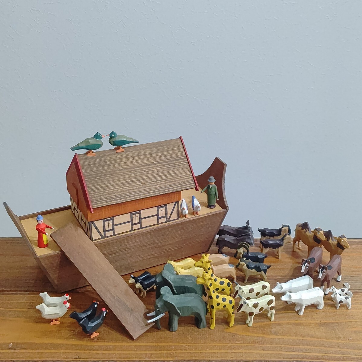 ドイツ製 ヴェルナー工房 Werner Wノアの方舟 木製 動物 置物 インテリア オブジェ 人形 中古 送料無料 即決