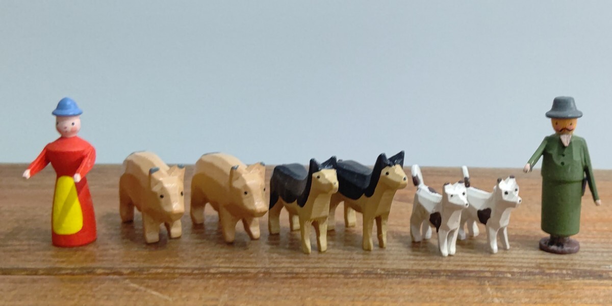 ザイフェン地方独特のろくろ製法(ライフェンドレーエン)の第一人者と言われる技術を駆使して、味わい深く精巧な動物のミニチュアを製作しているクリスチアン・ヴェルナー氏。その彼自身が一番好きな作品のひとつにこのノアの方舟セットをあげています。動物たちは方舟の中に収めることができます。