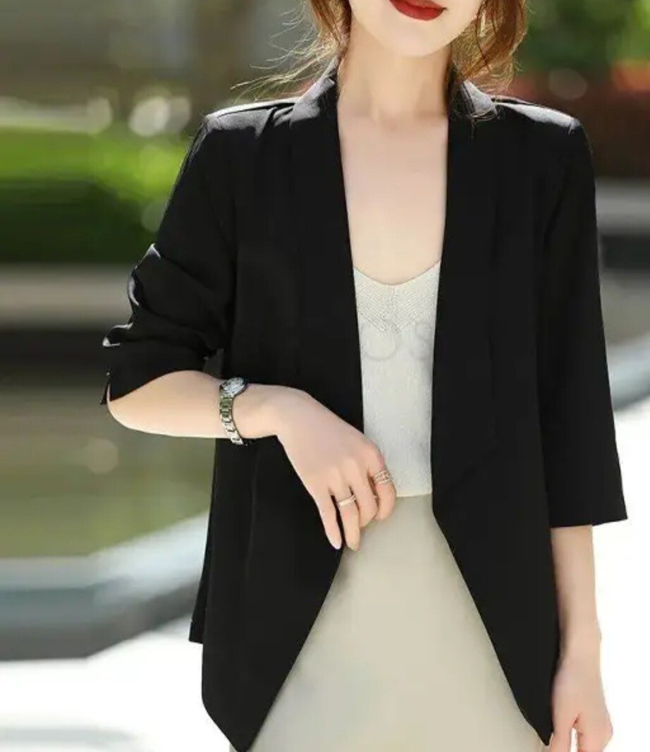 商品名 : 大人のお洒落をキャッチ! 柔軟加工 切り替え 無地 折り襟 七分袖 フェミニン カーディガン