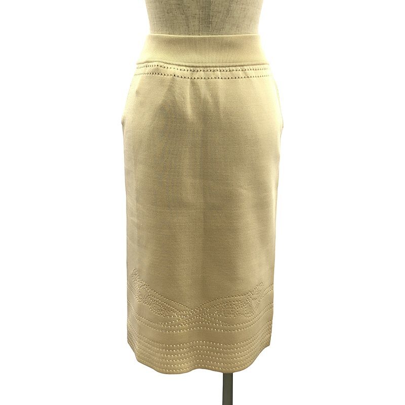 【美品】 HERMES / エルメス | 2023SS | ブリッドドゥガラ / シルク パンチング ニット スカート | 36 | ベージュ | レディース