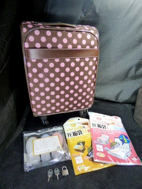 こちらは120サイズでの発送を予定しております。 送料は「配送・梱包方法」欄に記載がありますので、ご確認ください。 キャリーバッグ ・外寸(約):W32×D22×H47cm ・内寸(約):31.5×17×35cm 鍵、圧縮袋やトラベルボトルもあります。 詳細は写真でご確認ください。 写真のものがすべてです(キャリーバッグ、鍵、圧縮袋、トラベルボトルと以外のものはイメージのため、付属しません) こちらは中古品です。 使用による傷や汚れなど、写真をご確認の上での入札をお願いいたします。 詳細複数写真 ← Googleフォト リンク出来る場合写真はGoogleフォト 動画はYouTubeにリンクしています ※梱包について※ 緩衝材を使用した梱包をご希望の場合は60~100サイズまで100円、120~170サイズまで300円を頂戴いたします。 落札時にご希望の旨を必ずご連絡下さい。ご連絡がない場合は簡易梱包で発送致します。 簡易梱包の場合、追加費用はかかりません。 ※簡易梱包は緩衝材等を使用しませんのでご了承下さい。 素人なりに配慮した梱包を心掛けております。 しかしながら配送中にどうしても欠け、ひび、割れ等発生する場合がございますが免責とさせて頂き、返金等は致しかねますのでご了承・ご了解の上ご入札下さい。 詳しくは梱包・発送についてをご確認下さい。 商品ランク(ランクの記載のない商品もございます) A:新品・未使用品。 B:未使用に近い状態です。 C:中古品ですが目立った傷や汚れありません。 D:中古品の為、やや傷や汚があります。 E:中古品の為、傷や汚れ等の使用感が多数あります。 F:全体的に状態が悪い。 ☆個人での主観評価となりますので参考程度にしてください。 | ||||||||||||||||||||||||||||||||||||||||||||||||||||||||