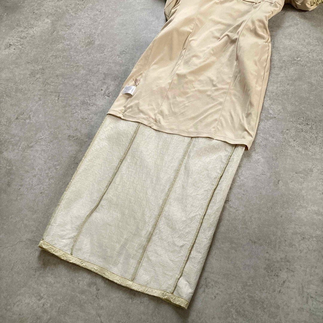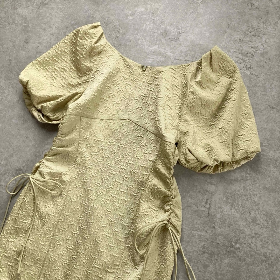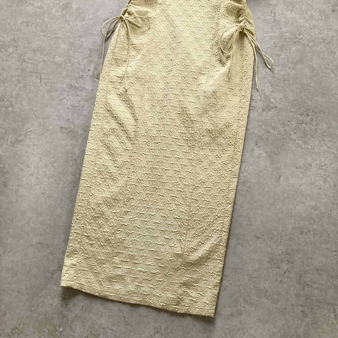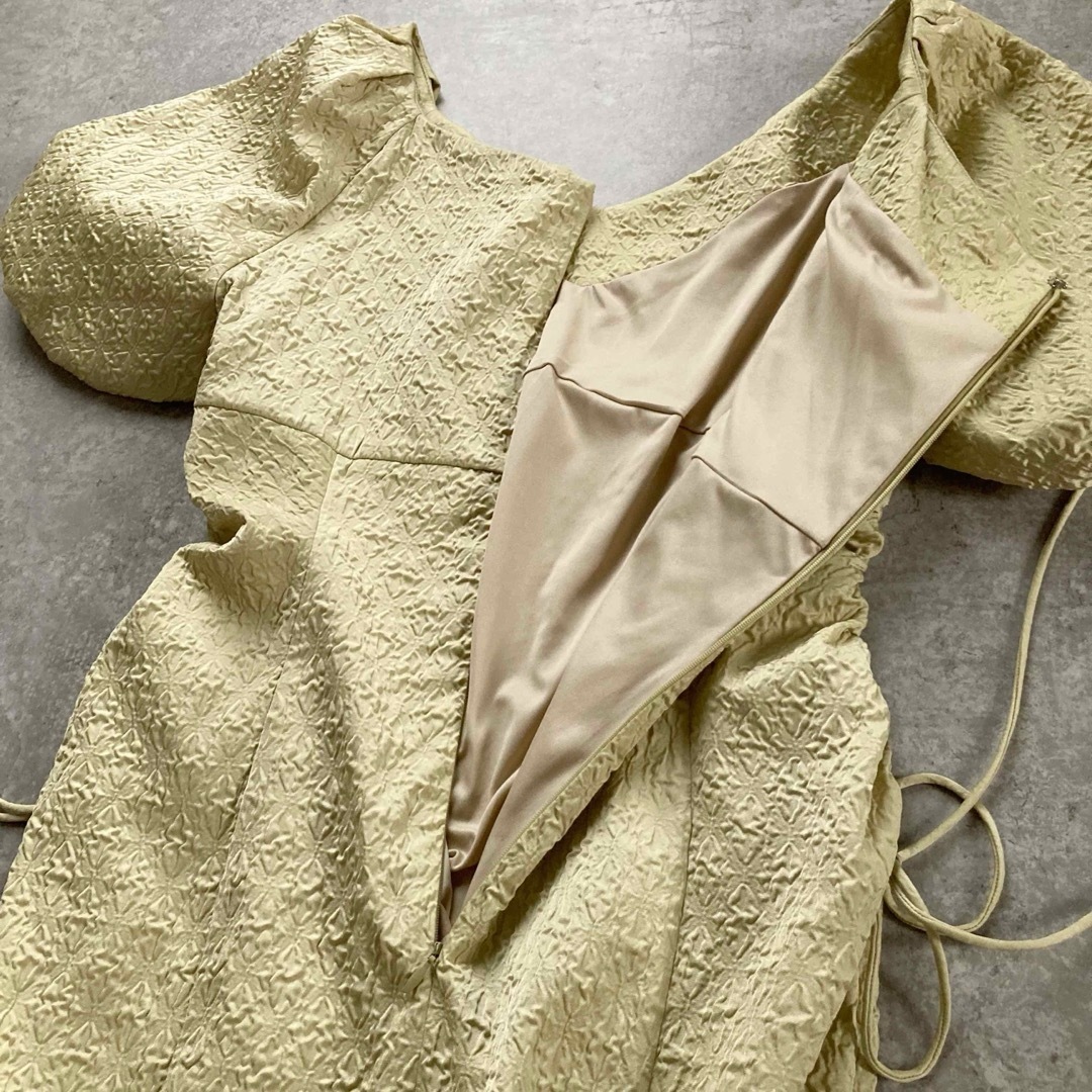 eimy istoire エイミーイストワール パフスリーブロングワンピース ナロー タイト サイドリボン ギャザー エンボス生地 ポコポコ