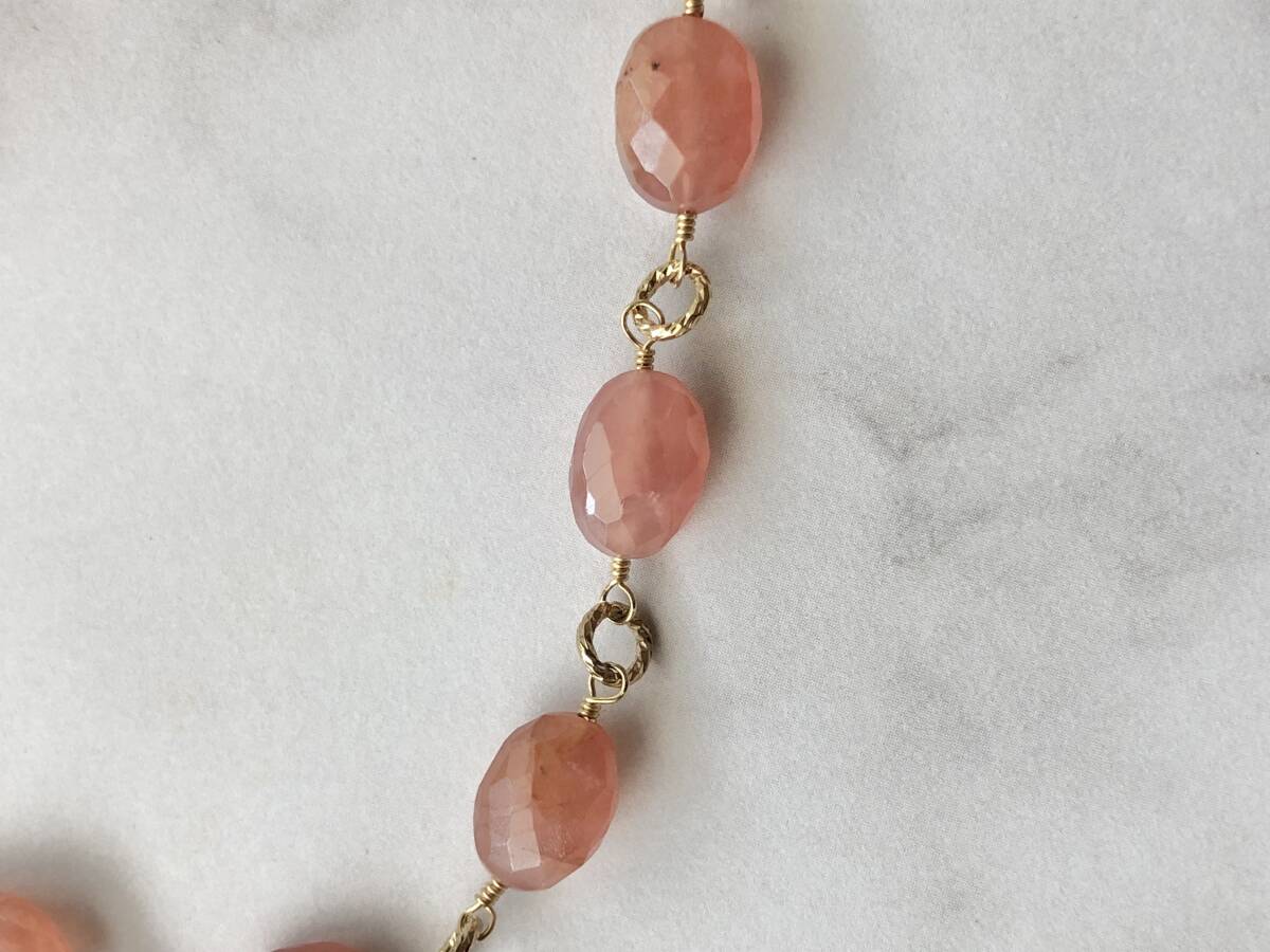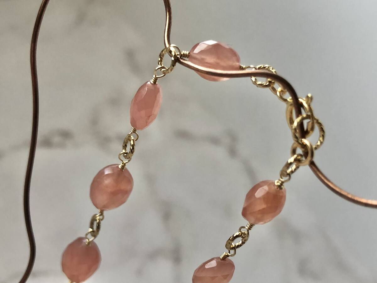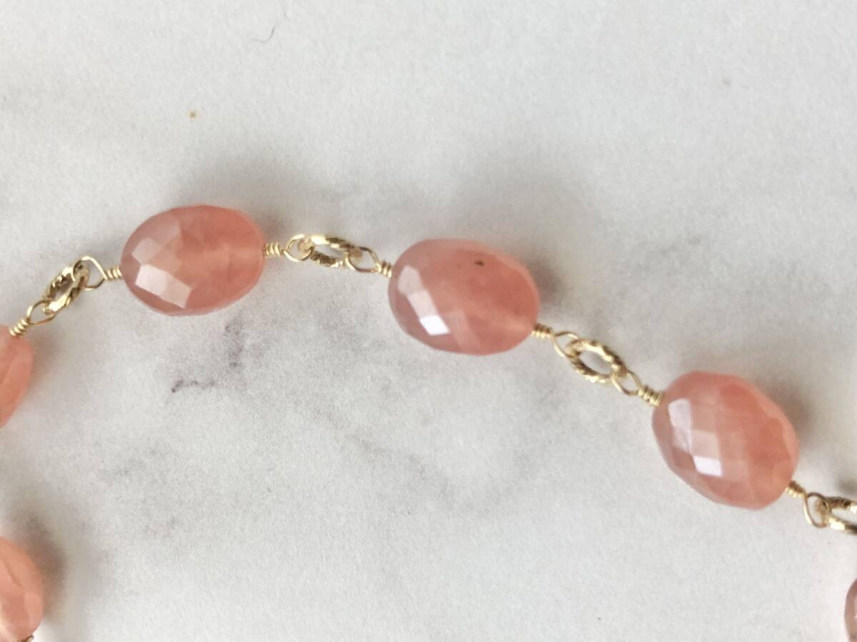 インカローズは硬度が低めですので、お取り扱いにご注意頂ければと思います。 またブレスレットの重ね付け、時計との重ね付け等は出来るだけお控えください。 |