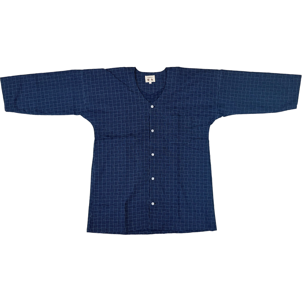 お祭用品/肉襦袢 鯉口シャツ 刺子ドビー織り 002網代格子 紺/青 大(大人用)