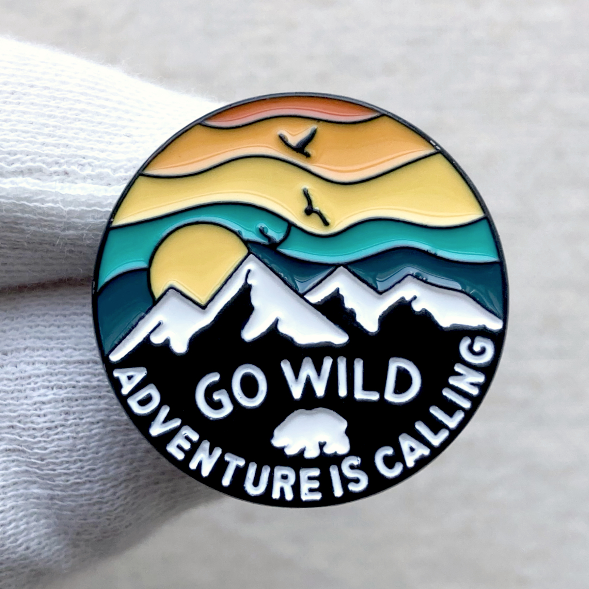 グラデーションの空と山の風景 夕焼け 日の出 大自然 登山◆ピンバッジ ピンズ バッチ ブローチ◆キャンプ アウトドア ネイチャー