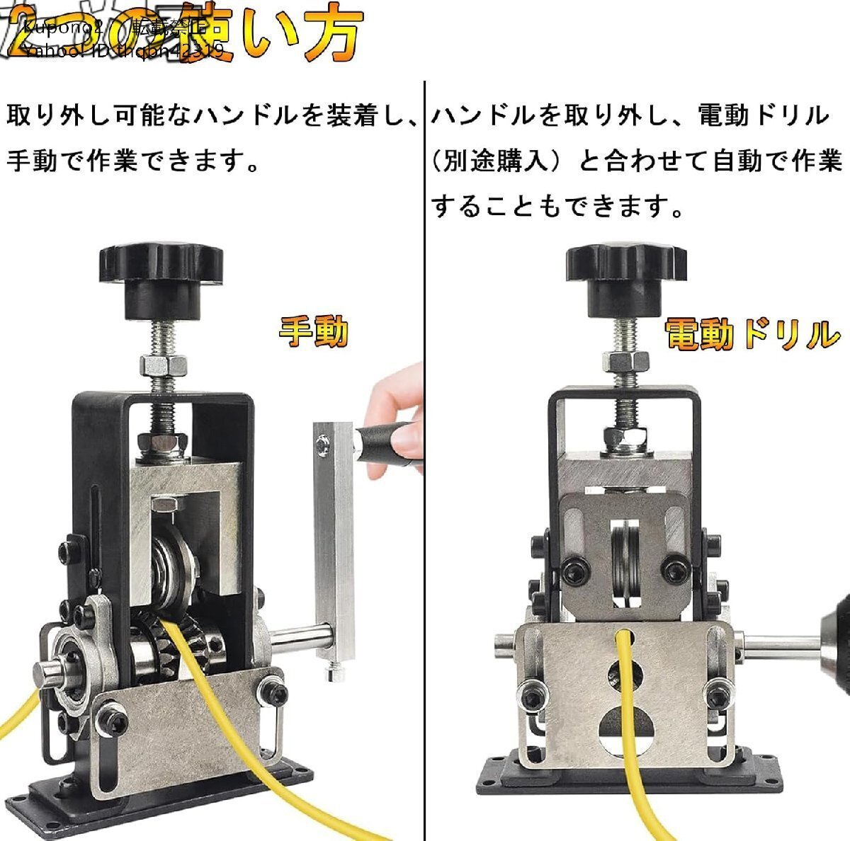 【2つの使い方】取り外し可能なハンドルを装着し、手動で作業できます。ハンドルを取り外し、電動ドリル(別途購入)と合わせて自動で作業することもできます。使いやすく、作業効率が大幅に向上します。
