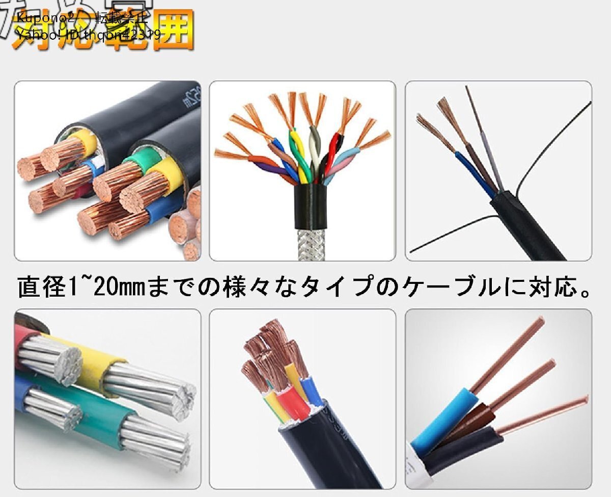 【対応範囲】直径1~20mmまでの様々なタイプのケーブルに対応。3つの異なるサイズの入口があり、ケーブルの直径に応じて入口を選択できます。