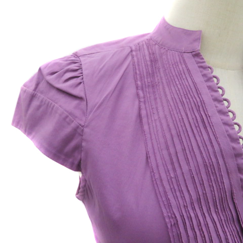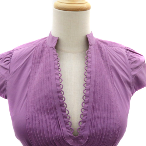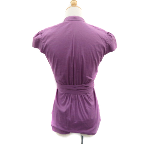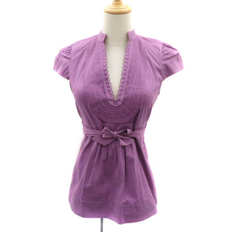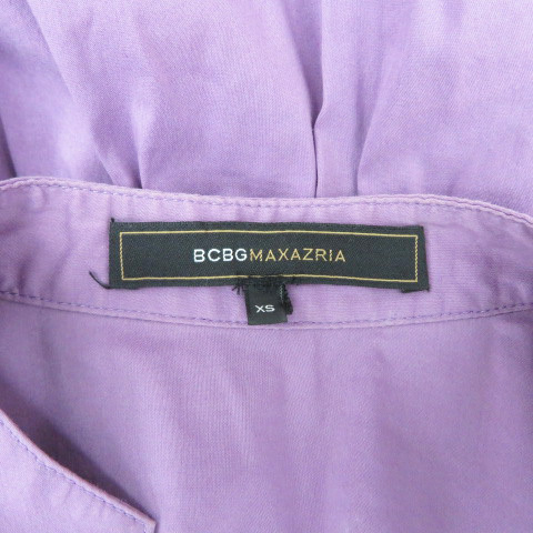 ビーシービージーマックスアズリア BCBGMAXAZRIA ブラウス カットソー 半袖 スリットネック ウエストリボン XS パープル レディース