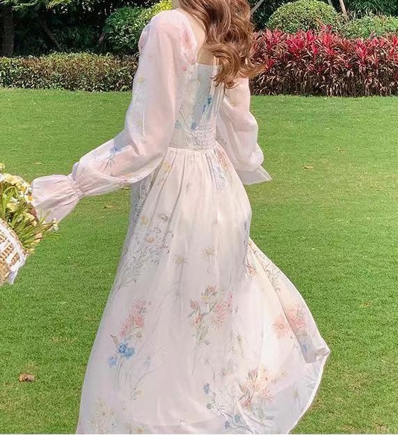 スクエアネックお袖ぷっくり、背中ゴムの