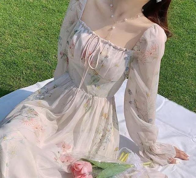 お嬢様ワンピ!!シースルーがおしゃれなかわいいワンピ★新品★大きいサイズ★裏地つきとってもおしゃれなロング丈ワンピ