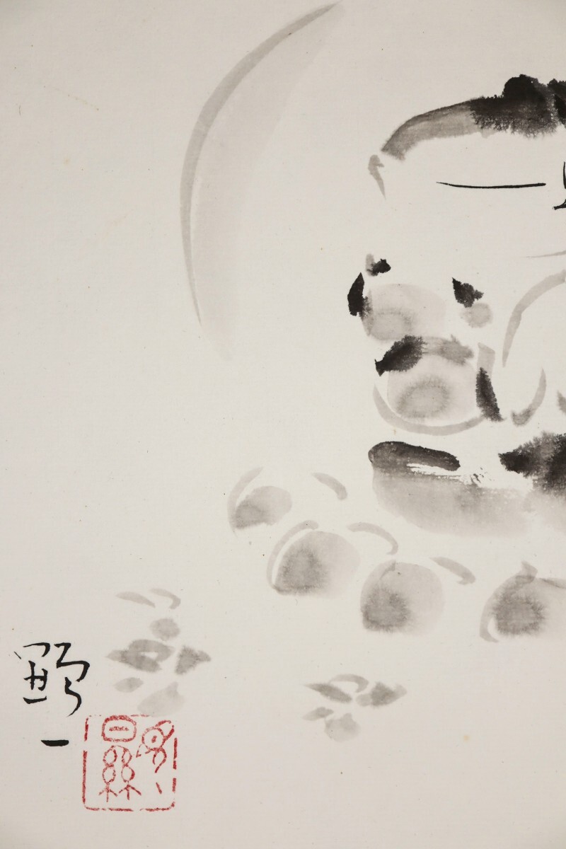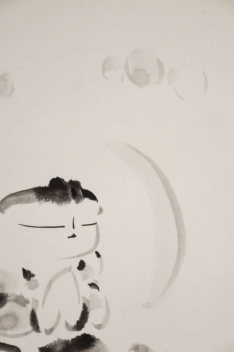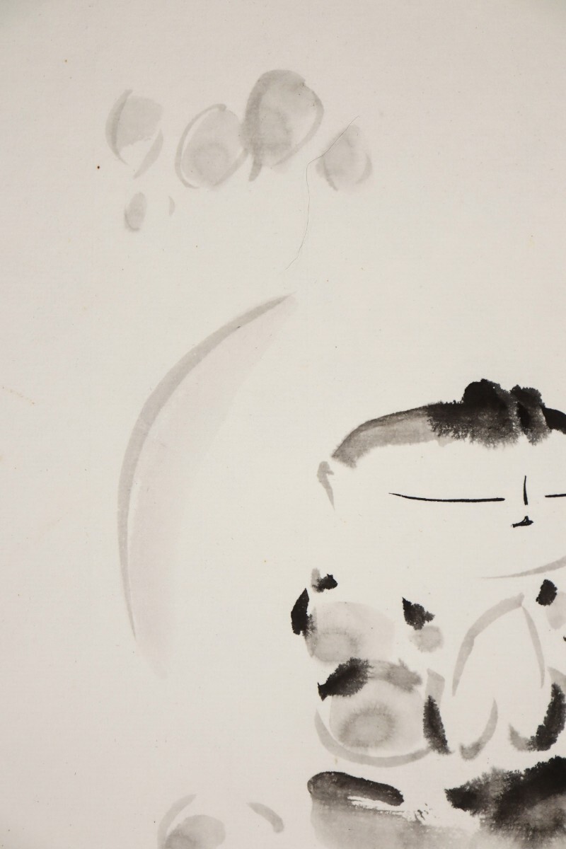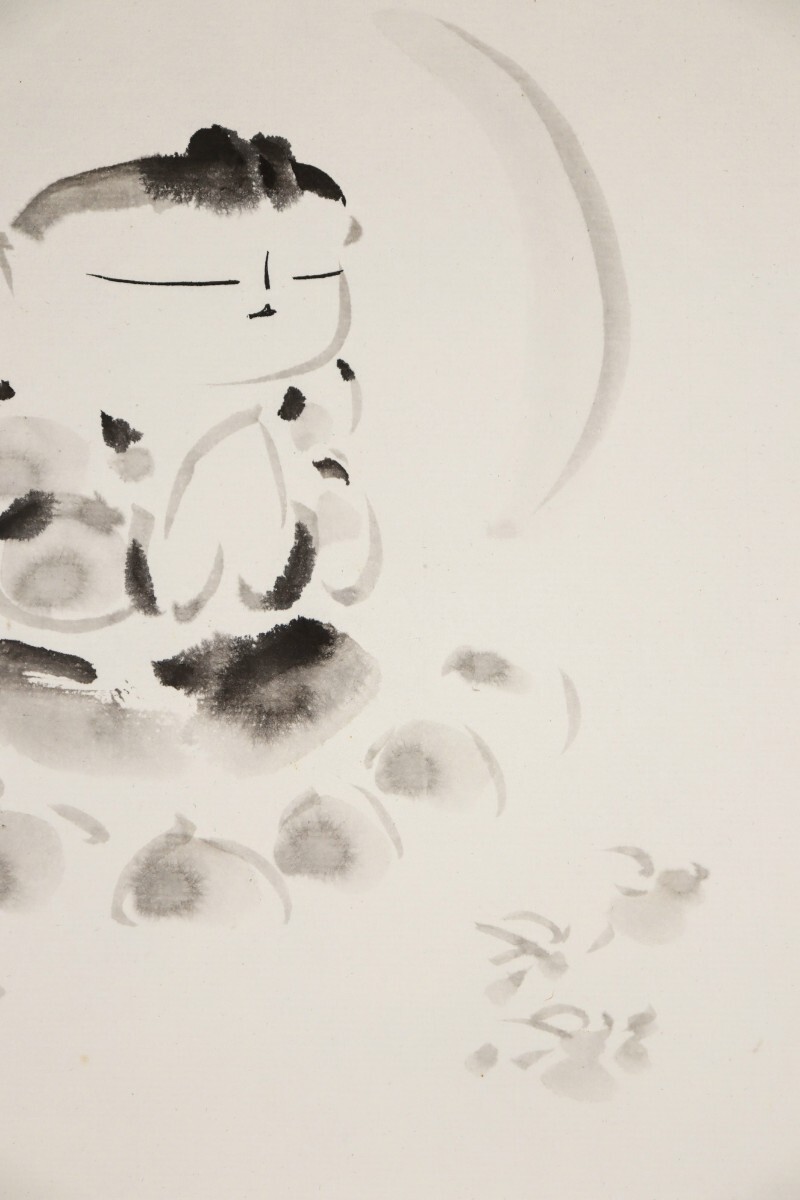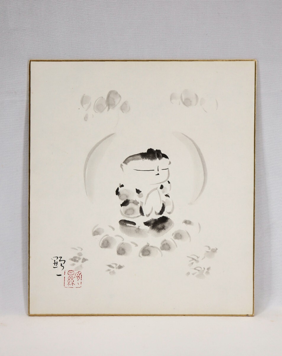 真作 佐久間顕一 水墨「合掌童子之図」画寸 24cm×27cm 京都府出身 安藤義茂に師事 童の表情がとても可愛く心和む 自然法爾に描く 10789