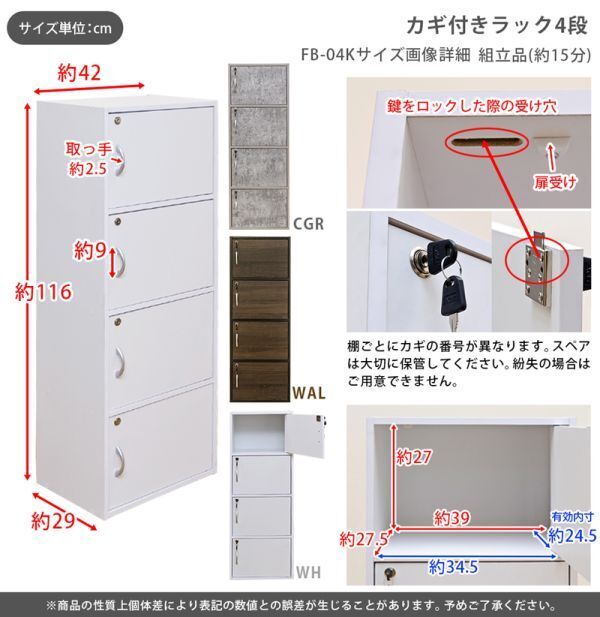 | 鍵付きラック 4段 ウォールナット(WAL) | |