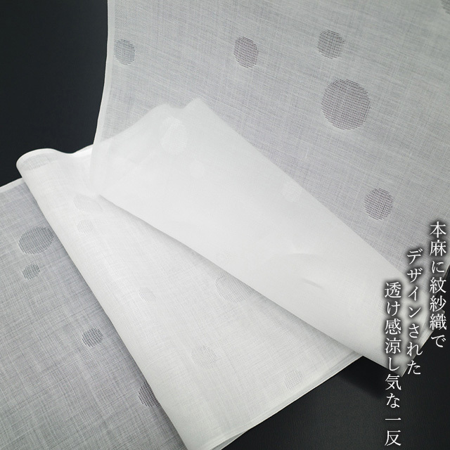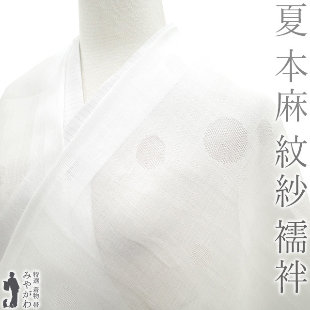 夏物 長襦袢 反物 本麻 紋紗 麻 100% 夏 襦袢 志賀麻 白 ホワイト 水玉 ドット 洗える長襦袢 自宅で洗える 新品 未仕立て sb15471