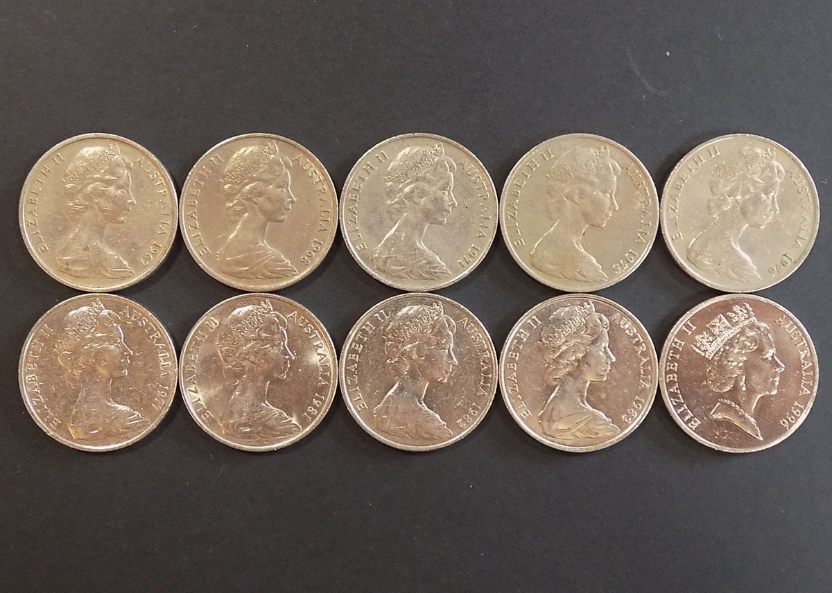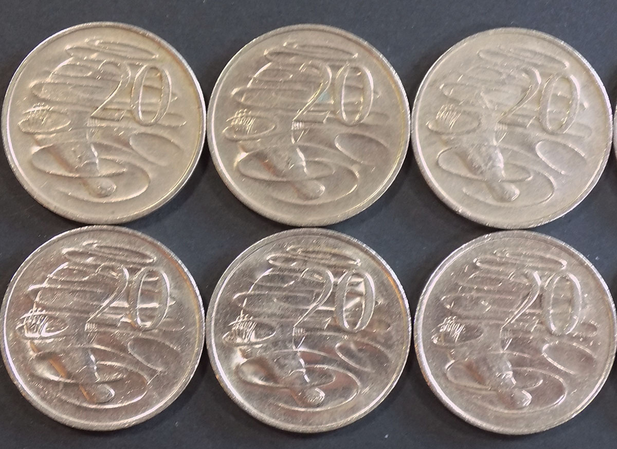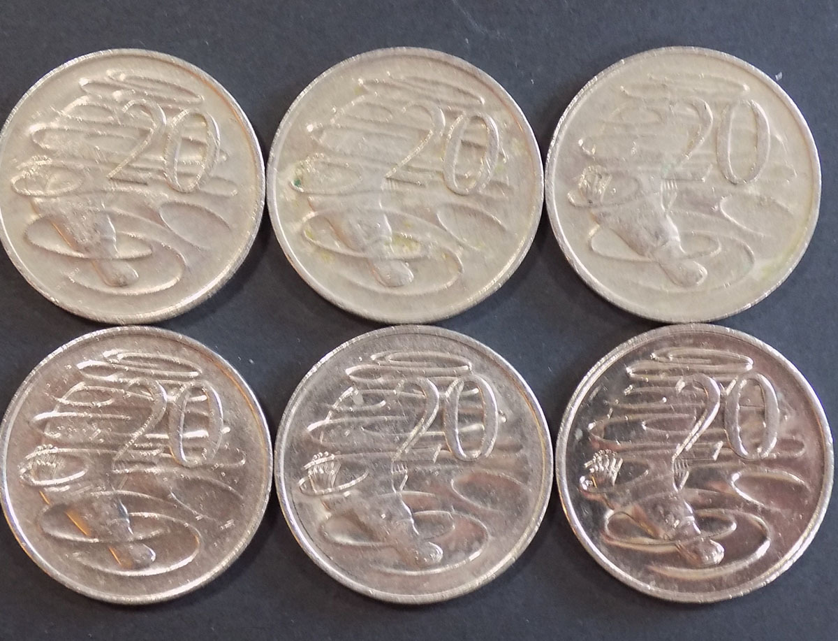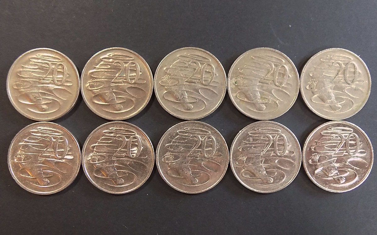 ・【すみれ】古銭:オーストラリア:カモノハシ20セントコイン:10枚★蔵出品★ |