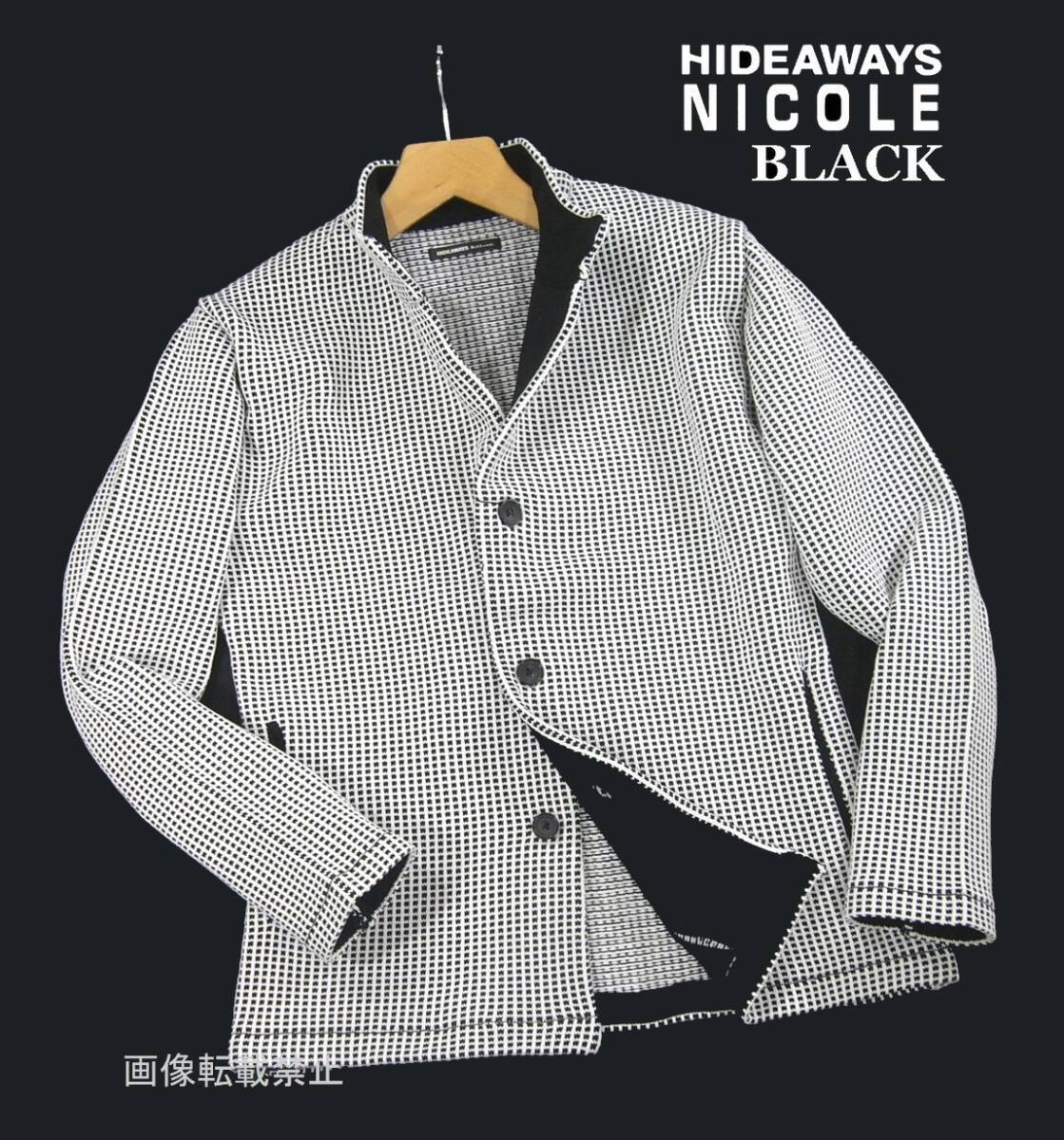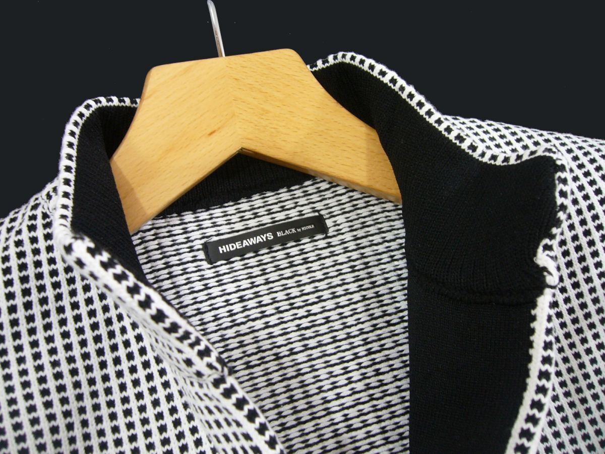 新品 ★ HIDEAWAYS BLACK by NICOLE ニコル スタンド ニット ジャケット 46/M 白/黒 格子柄 メンズ ブルゾン カーディガン アウター