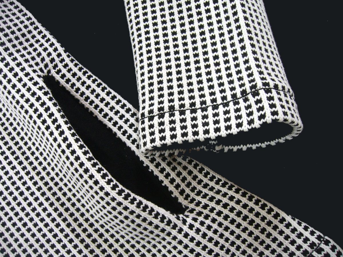 ●綿とポリエステルの糸を使用し、白黒のモノトーン配色のワッフル柄がセンスの良さを演出します。