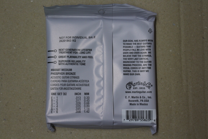 MA550T AUTHENTIC ACOUSTIC LIFESPAN 2.0 92/8 PHOSPHOR BRONZE Mediumは、ミディアム・ゲージのアコギ用フォスファーブロンズ弦。きらびやかで華やかなトーンが魅力。Martin LIFESPAN 2.0シリーズは、ノンコーティング弦のトーンのままに長寿命を実現し、フィンガリングノイズも軽減させ、優れたプレイアビリティとフィーリングを提供する次世代コーティング弦です。