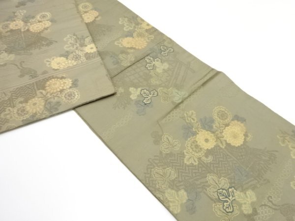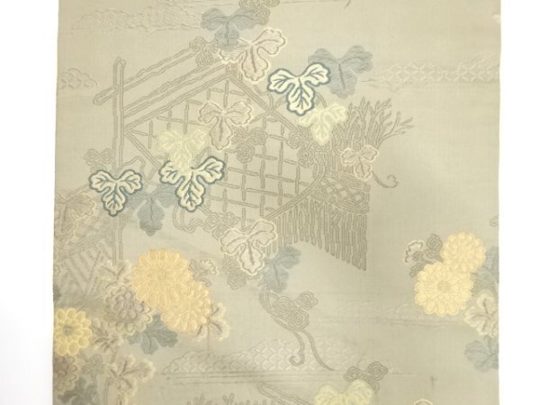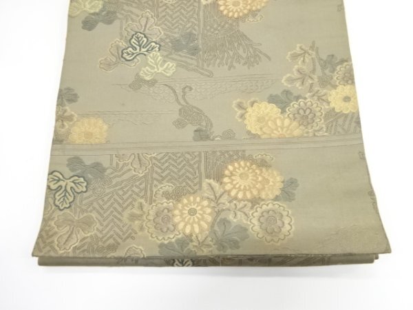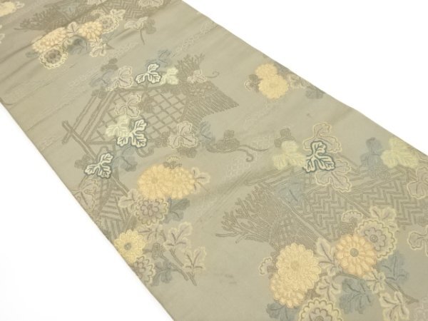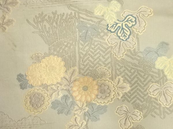ys7373009; 宗sou 垣根に菊・蔦の葉模様織り出し丸帯(材料)【アンティーク】【着】