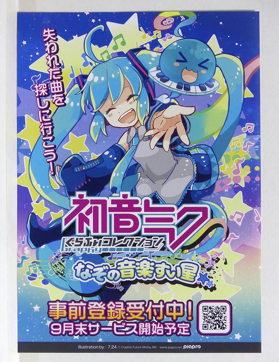 初音ミクぐらふぃコレクション なぞの音楽すい星(イラスト 7:24)、チラシのセット■A4版 クリアファイル■非売品