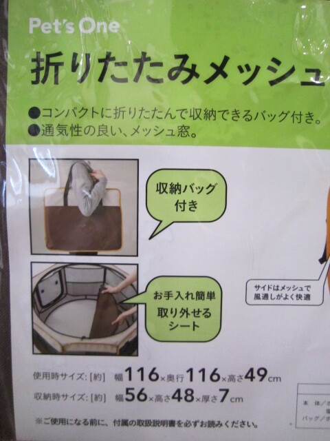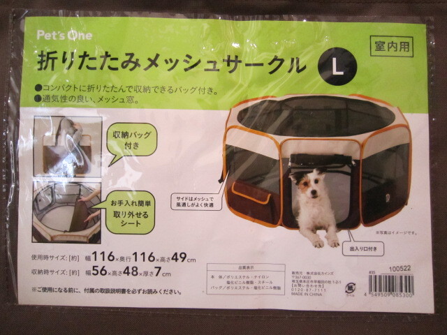 ほぼ未使用 Pet's One 折りたたみメッシュサークル 室内用L(ラージ)サイズ 軽量 折りたたみ式 ペットサークル ケージ 取扱説明付き