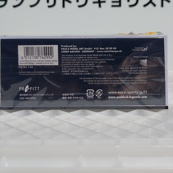 商品名;【SALE】ミニチャンプス PMA 1/43 レッドブル RB16B M.フェルスタッペン 2021年USGP優勝