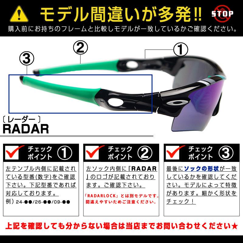 ■備考 : オークリー純正品ではございません。素材が異なるためオークリー純正品と比べると少し柔らかくできております。シリコンゴムの性質上鋭い切れ目が入ると裂けてしまう事があります。着脱時に無理やり引っ張るなどゴムに強いストレスを加えると、ゴムが伸びてしまう事がありますので微量の中性洗剤を水に混ぜるなどして滑りを良くしてから行なって下さい。