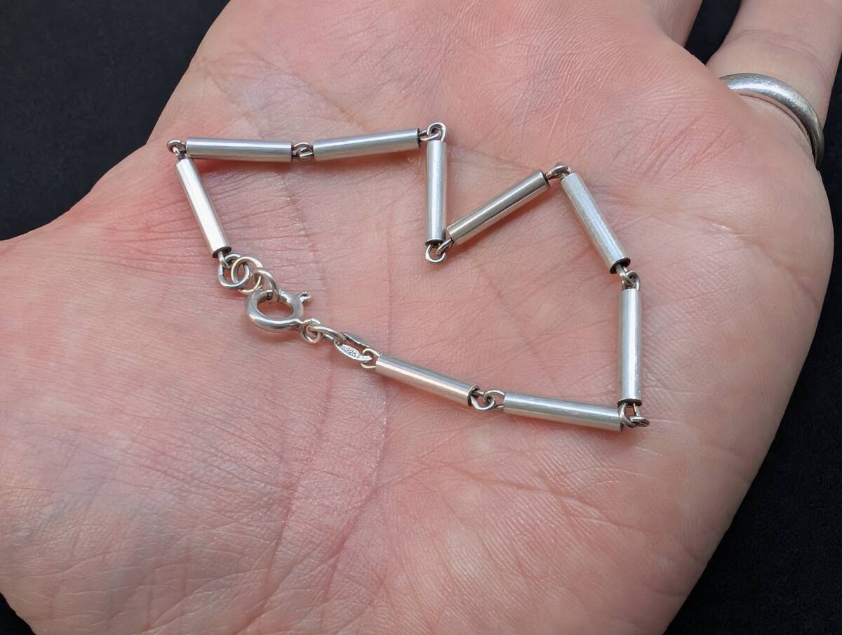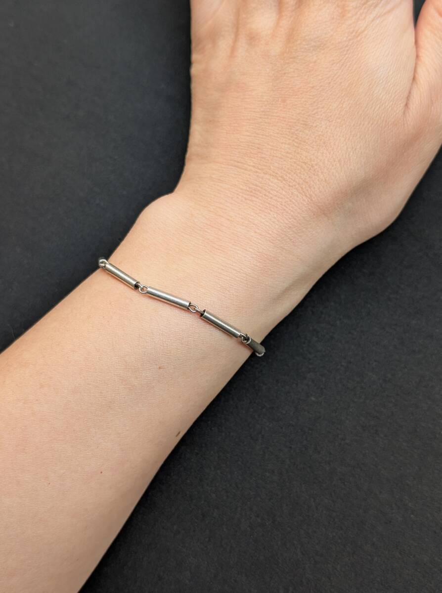 シリンダーのようなパーツが連なったインダストリアル&モダンなブレスレット