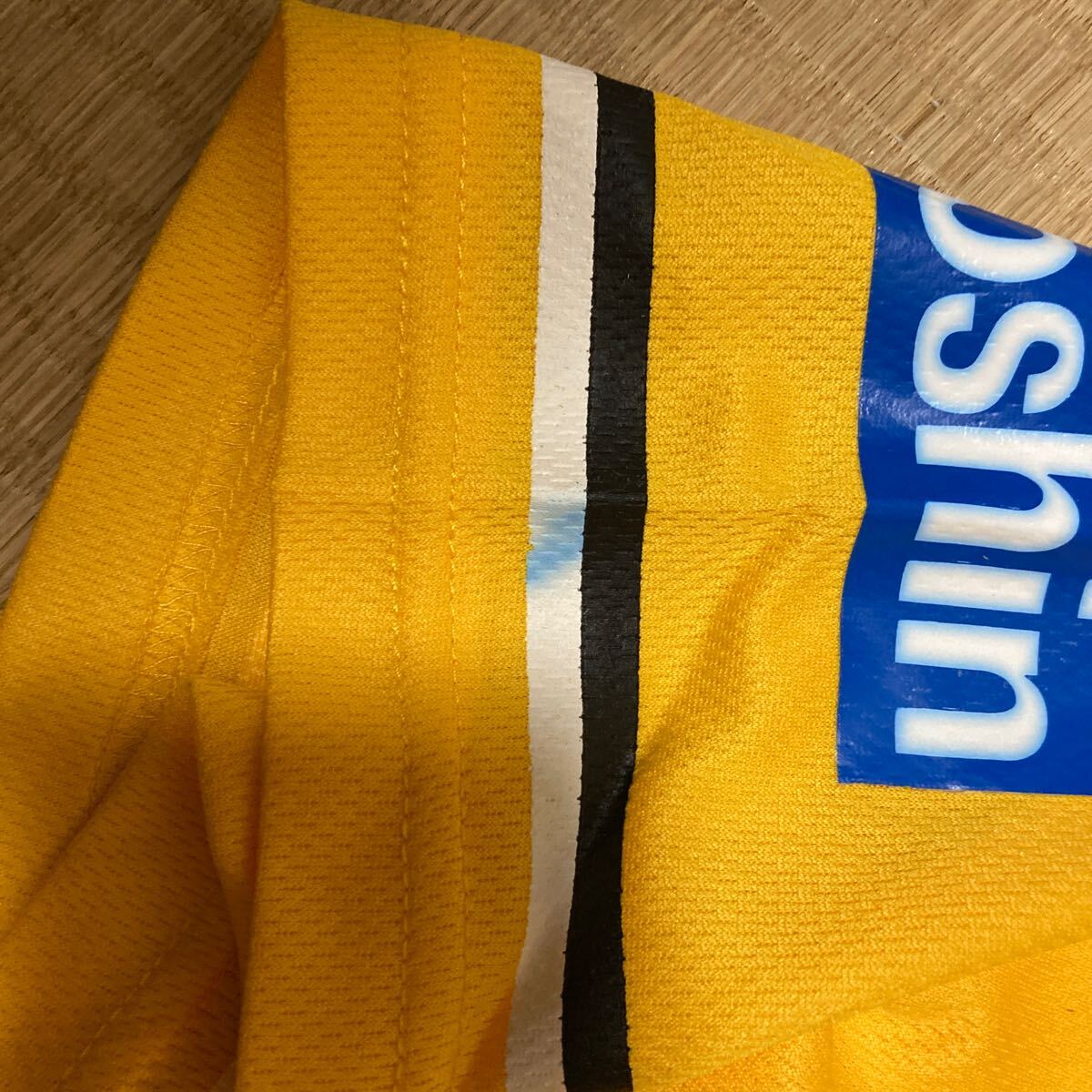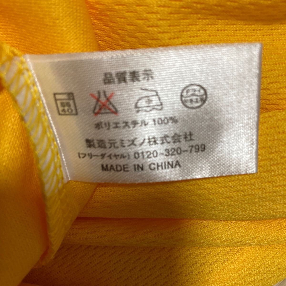 阪神タイガースユニホームです。Joshinの景品になります。造りは粗めでボタン辺りの糸が出ています。タグには製造元ミズノ株式会社とあります。サイズ表記はありませんがLサイズ以上はあると思います。新品未使用ですが長期保管のため右袖のJoshinのロゴの色移りがあります。過度に神経質な方は入札をお控え下さい。