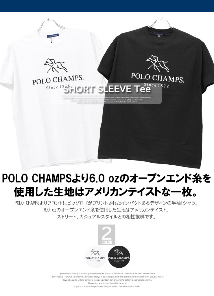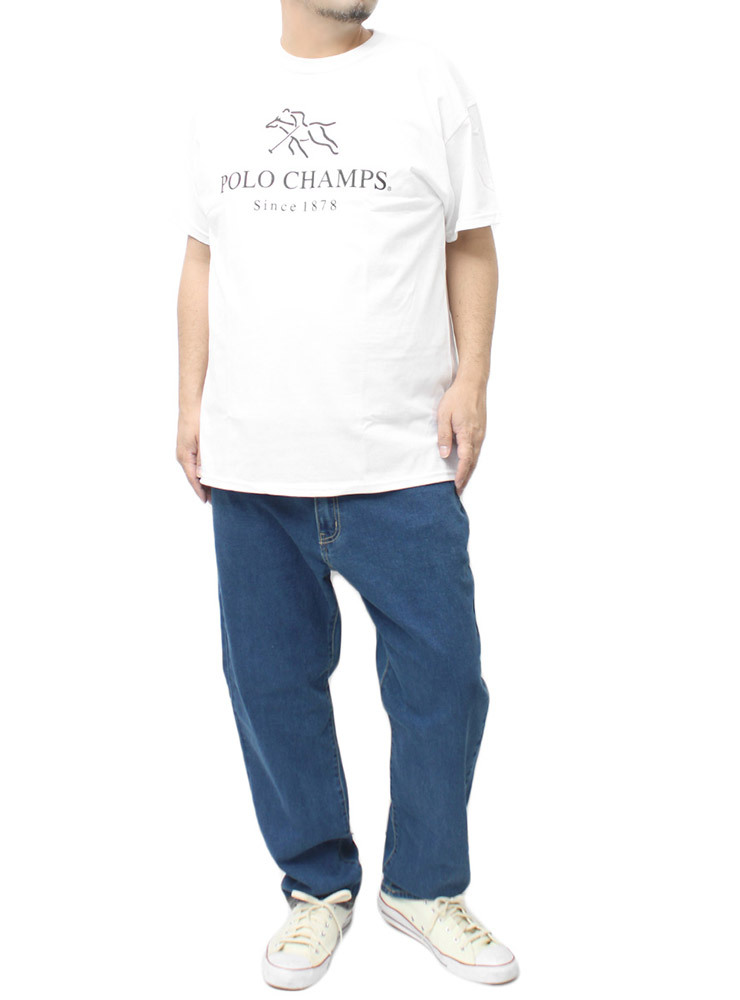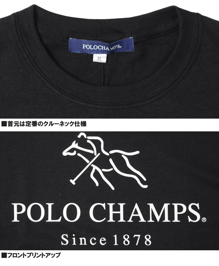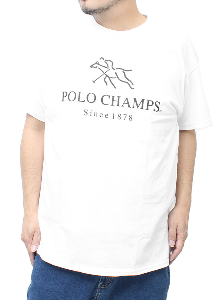 | 商品名 | 【新品】 5L ホワイト POLO CHAMPS(ポロチャンプス) 半袖 Tシャツ メンズ 大きいサイズ ロゴ プリント クルーネック カットソー |