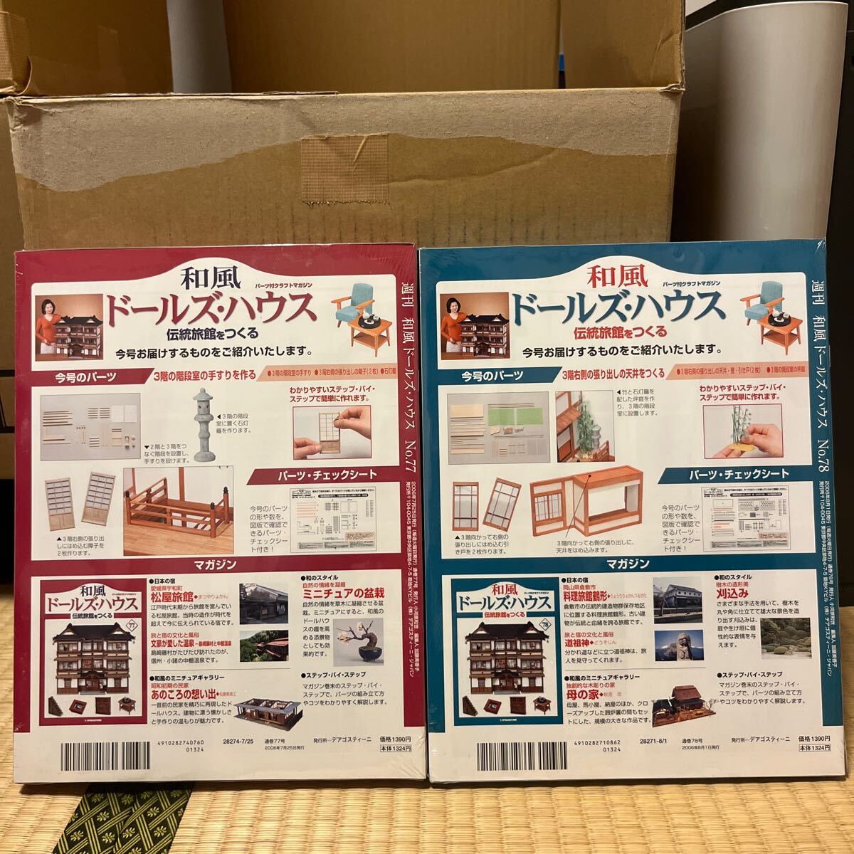 壮麗な4層3階建ての木造日本旅館のミニチュア(1/20スケール。高さ66cm×幅79cm×奥行39cm)と、情緒ある家具や調度品を手作りするクラフトマガジンです。古きよきたたずまいを残す老舗旅館の写真を通じて、美しい日本建築を毎号ビジュアルで紹介するとともに、温泉や旅にまつわる含蓄に富んだ話も掲載します。また、和風ドールハウスや和風小物を作るうえで役に立つ実物写真も、詳しい解説とともに紹介します。