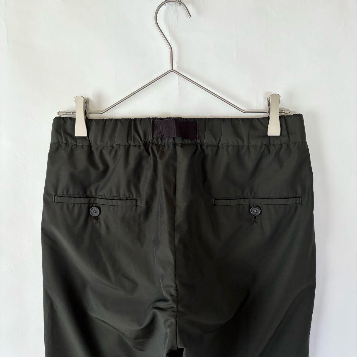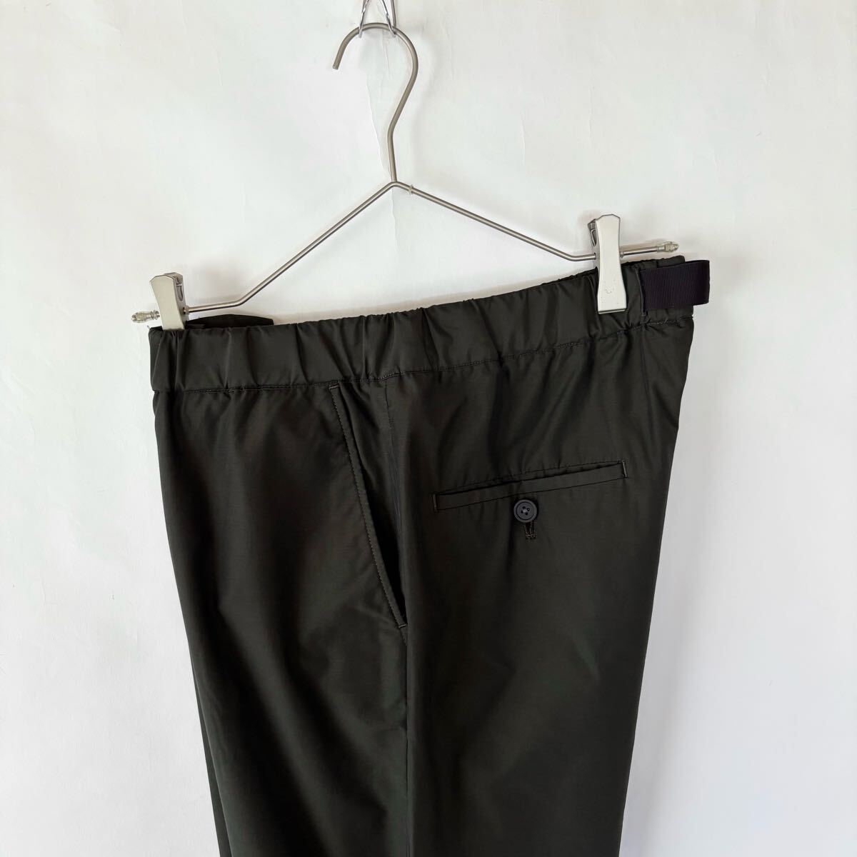 【美品】TOMORROWLAND PILGRIM 日本製 トゥモローランドピルグリム ロロピアーナ社製生地 イージー スラックス 撥水生地 オリーブ size XS