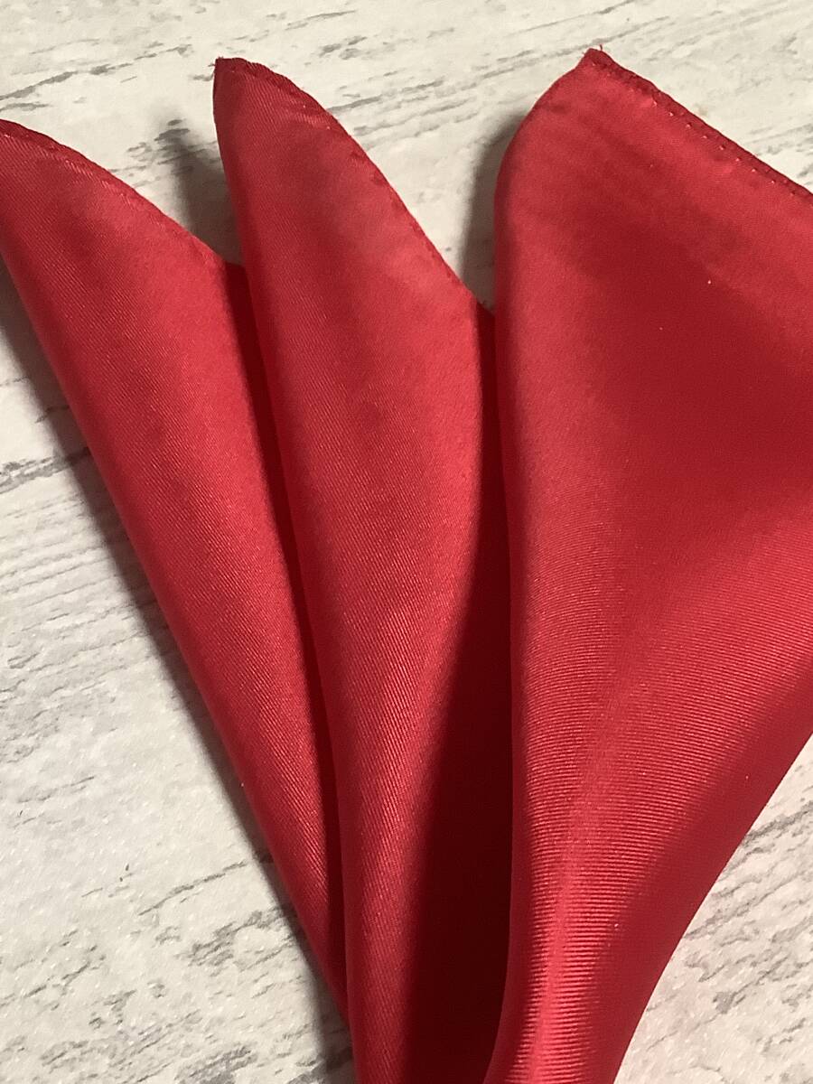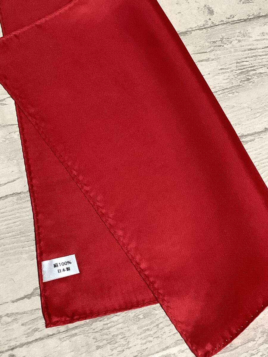新品ポケットチーフです。 赤色 還暦としてもお使いいただけます。 シルク100% 日本製 サイズは28×28cm
